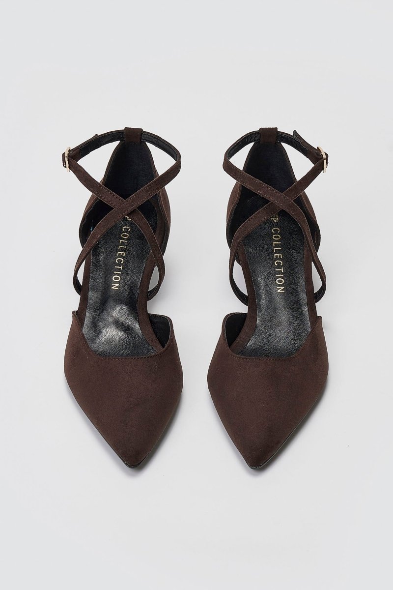 Σουέτ μυτερές γόβες με πλαϊνά κοψίματα, χιαστί λουράκια και χαμηλό τακούνι kitten. Μια εκλεπτυσμένη ισορροπία κομψότητας, άνεσης και σύγχρονης φινέτσας.
