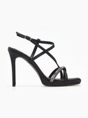 Πέδιλα σατέν με κρύσταλλα και μπαρέτα tfp - Μαύρο