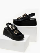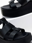 Πλατφόρμες δερμάτινες με φαρδιά λουράκια tfp - Μαύρο