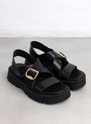 Σανδάλια flatforms δερμάτινα με φαρδιά φάσα Iris Sandals - Μαύρο