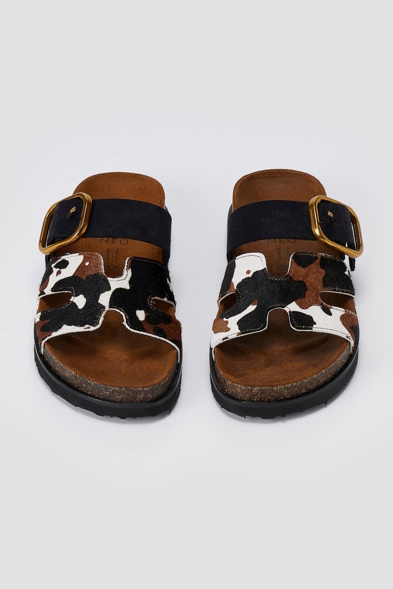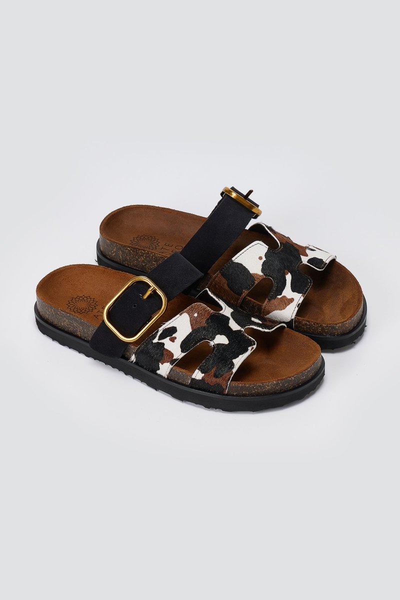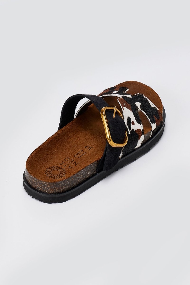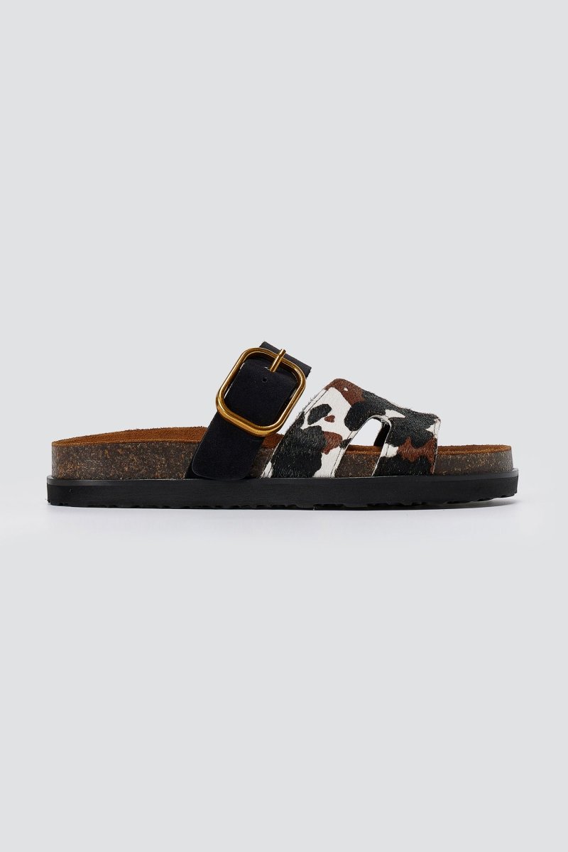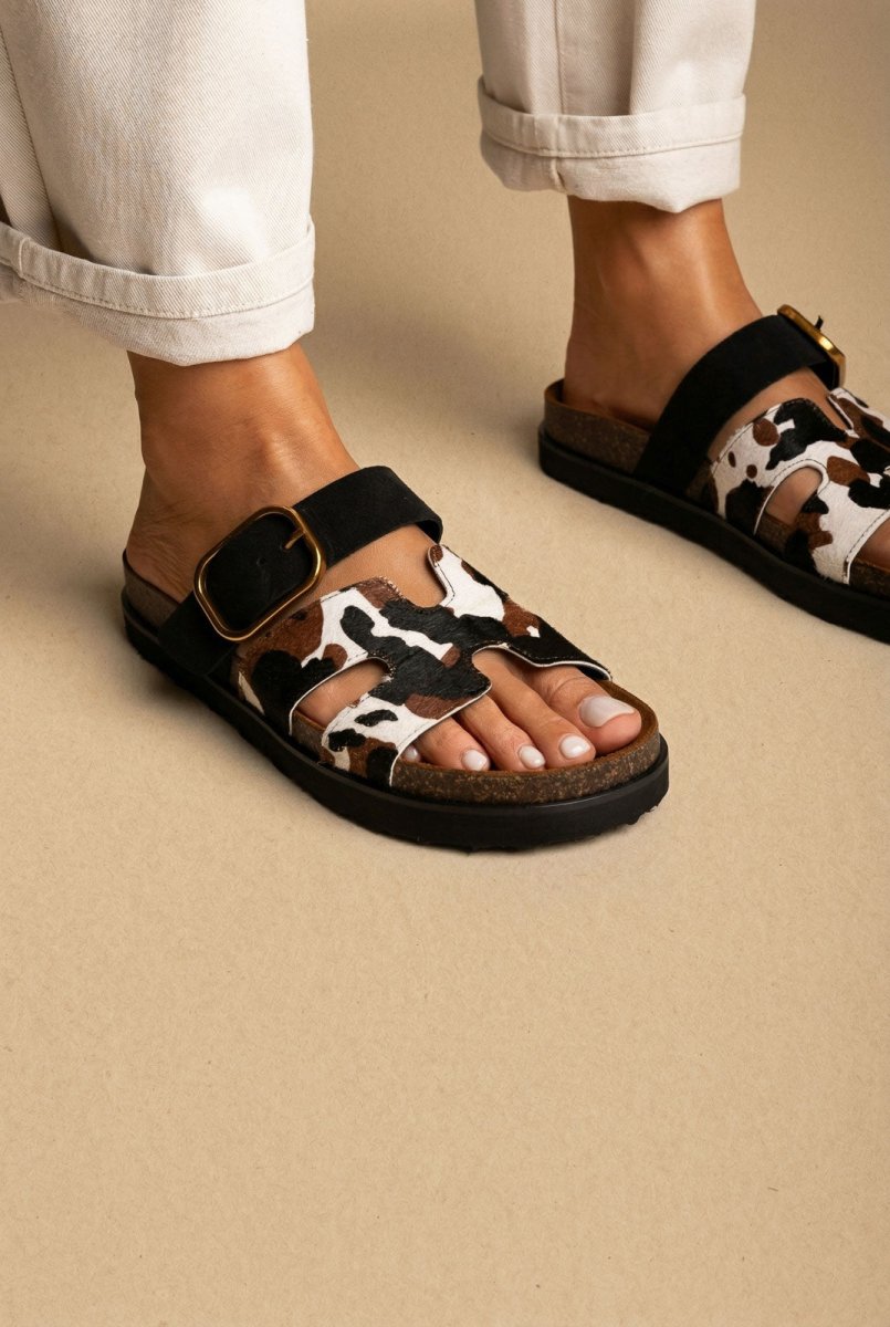 Animal Print Sandals Buckle Strap - Black Cow Pony