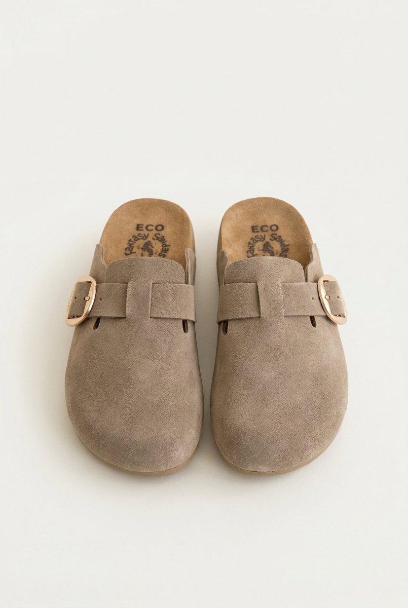 Clogs Buckle Detail - Taupe Suede