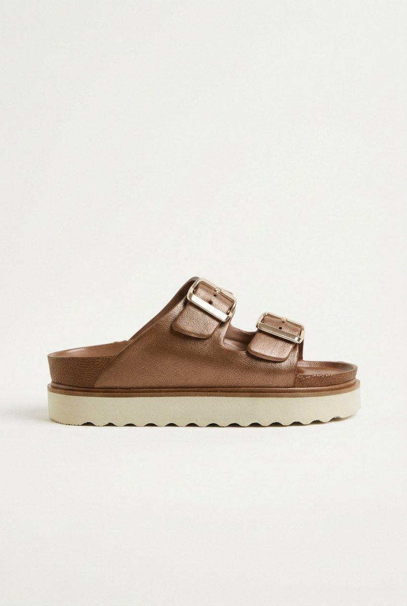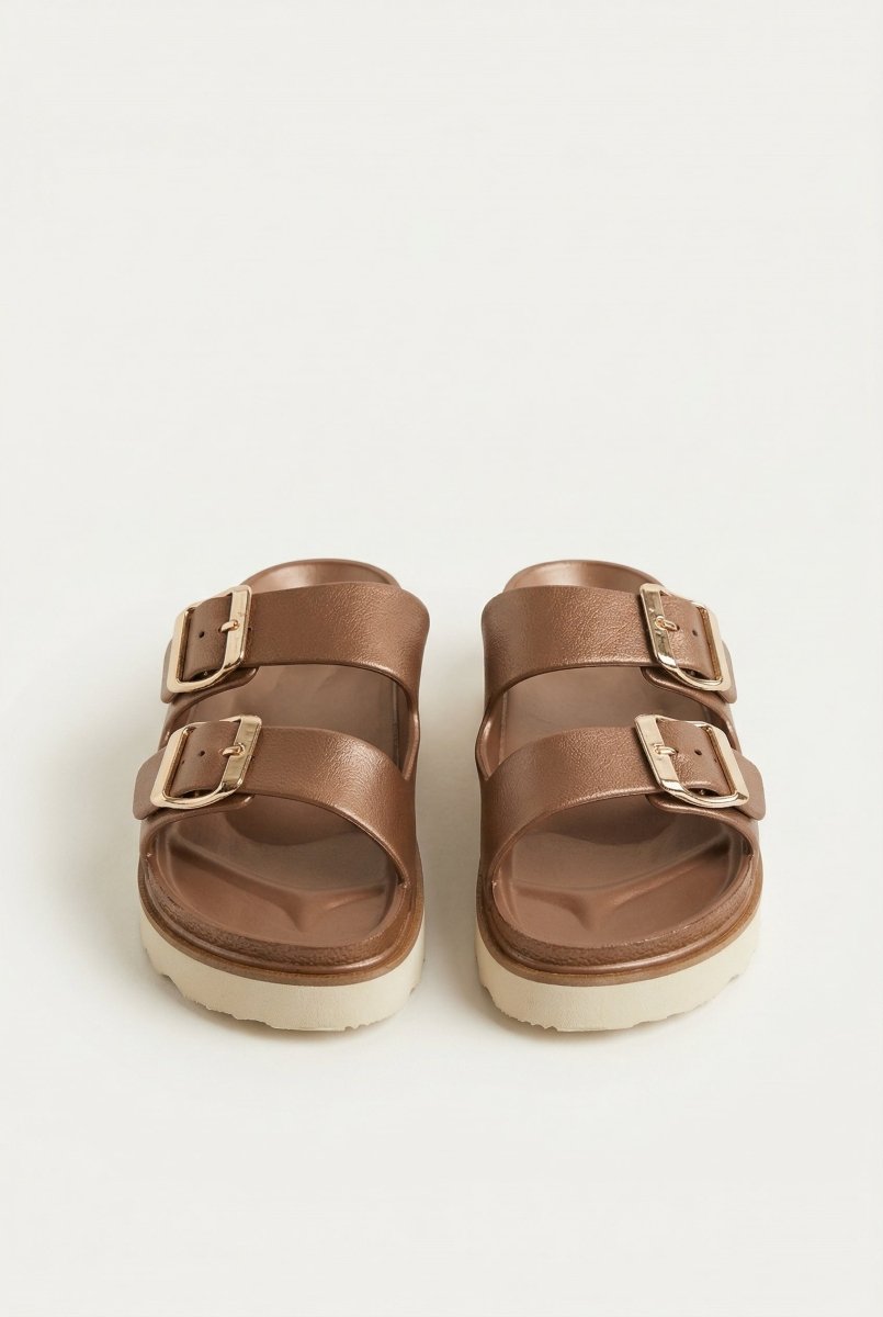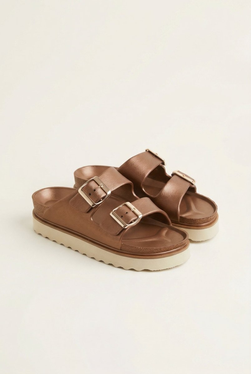 Flatform Buckle Sandals - Matte Rose Gold