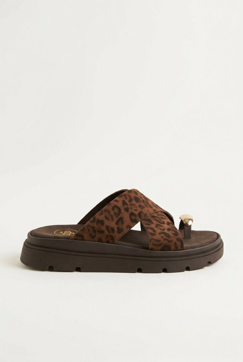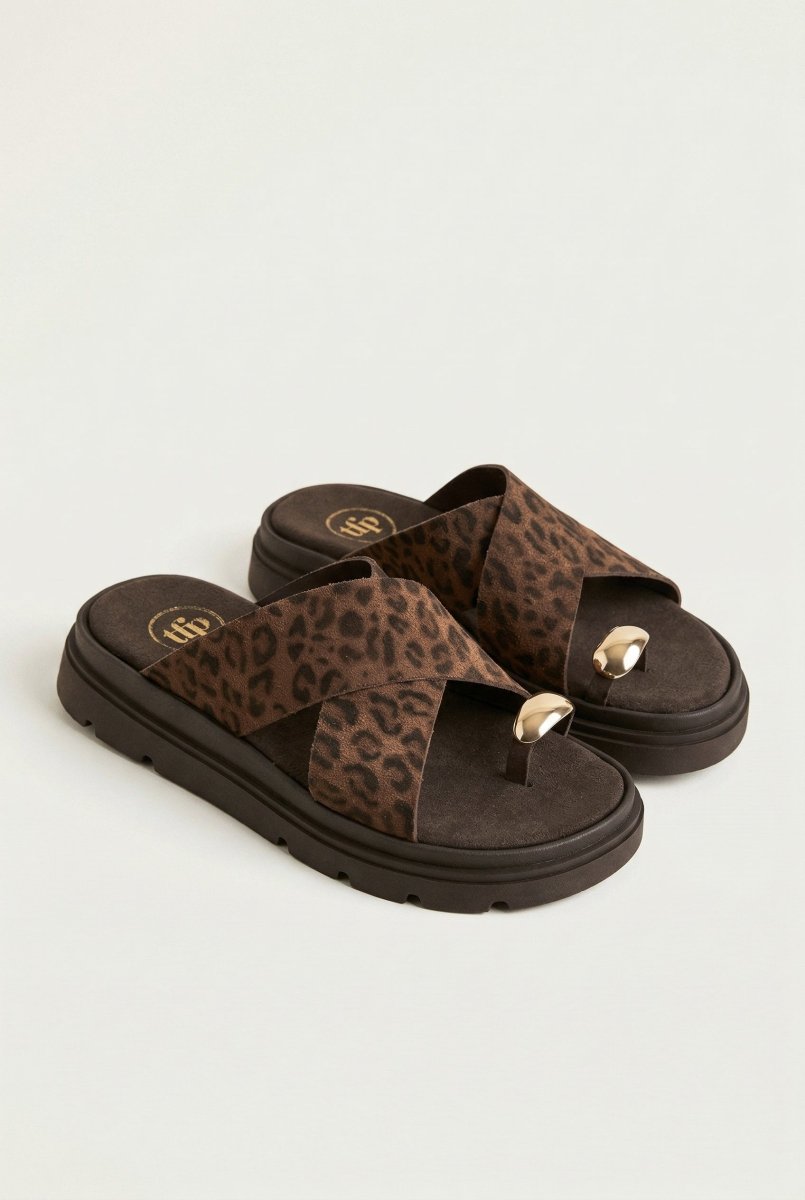 The TFP Flatform Sandals Crossover in Leopard Suede combines contemporary style with everyday comfort. These statement sandals feature genuine suede leather construction with eye-catching leopard print detailing and distinctive crossover wide straps. The flatform sole provides elevated comfort while maintaining a modern aesthetic, making these sandals an ideal choice for casual outings, weekend wear, and fashion-forward styling.