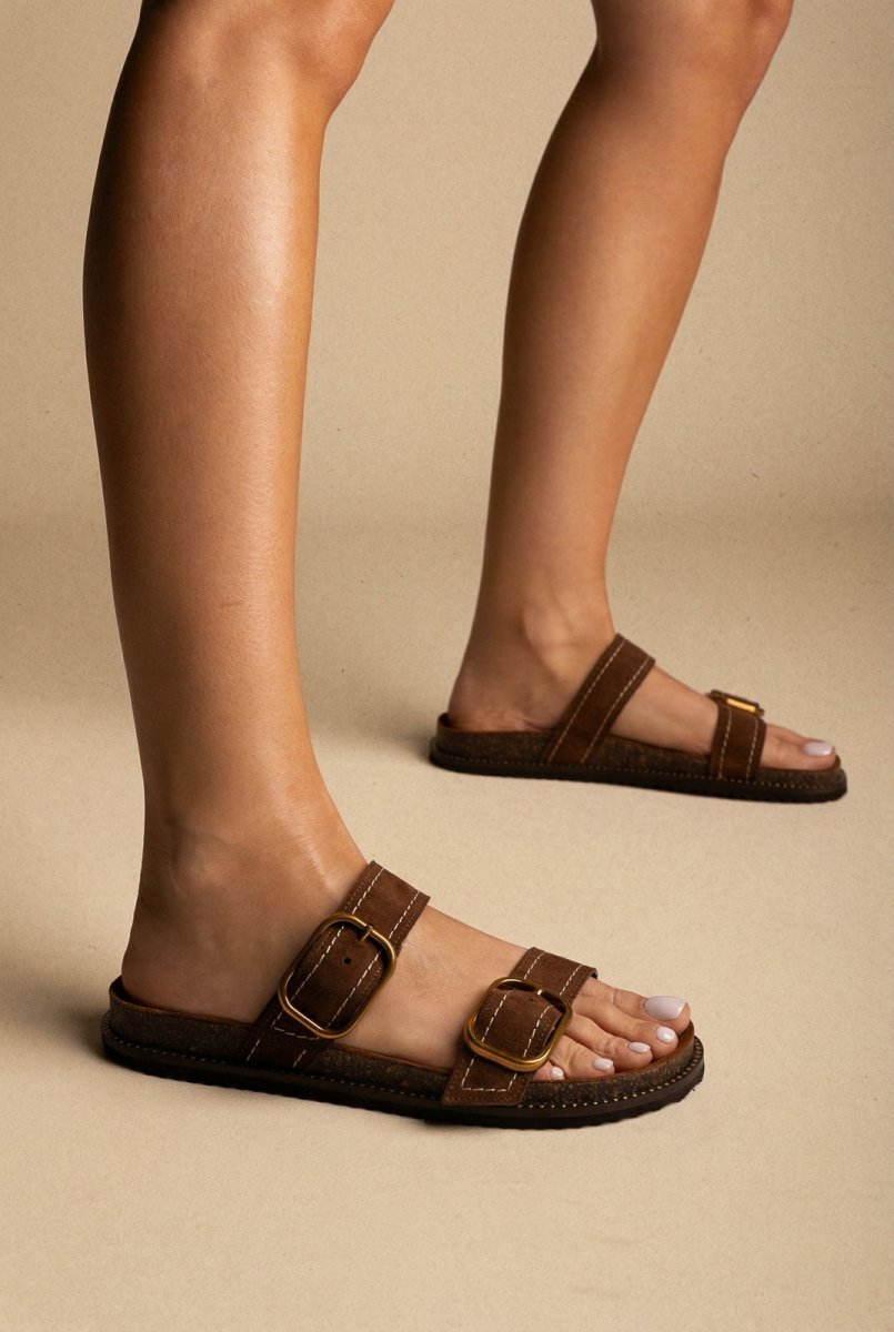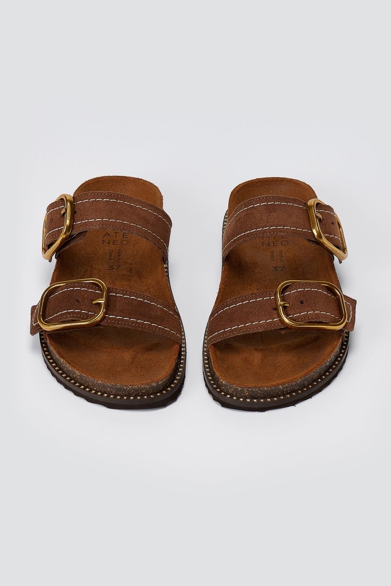The ATENEO Leather Sandals with Anatomical Footbed combine timeless style with exceptional comfort. Crafted from genuine brown suede leather, these sandals feature visible strap stitching that showcases quality craftsmanship. The anatomical suede footbed provides supportive comfort, making them an ideal choice for everyday summer wear and casual occasions.