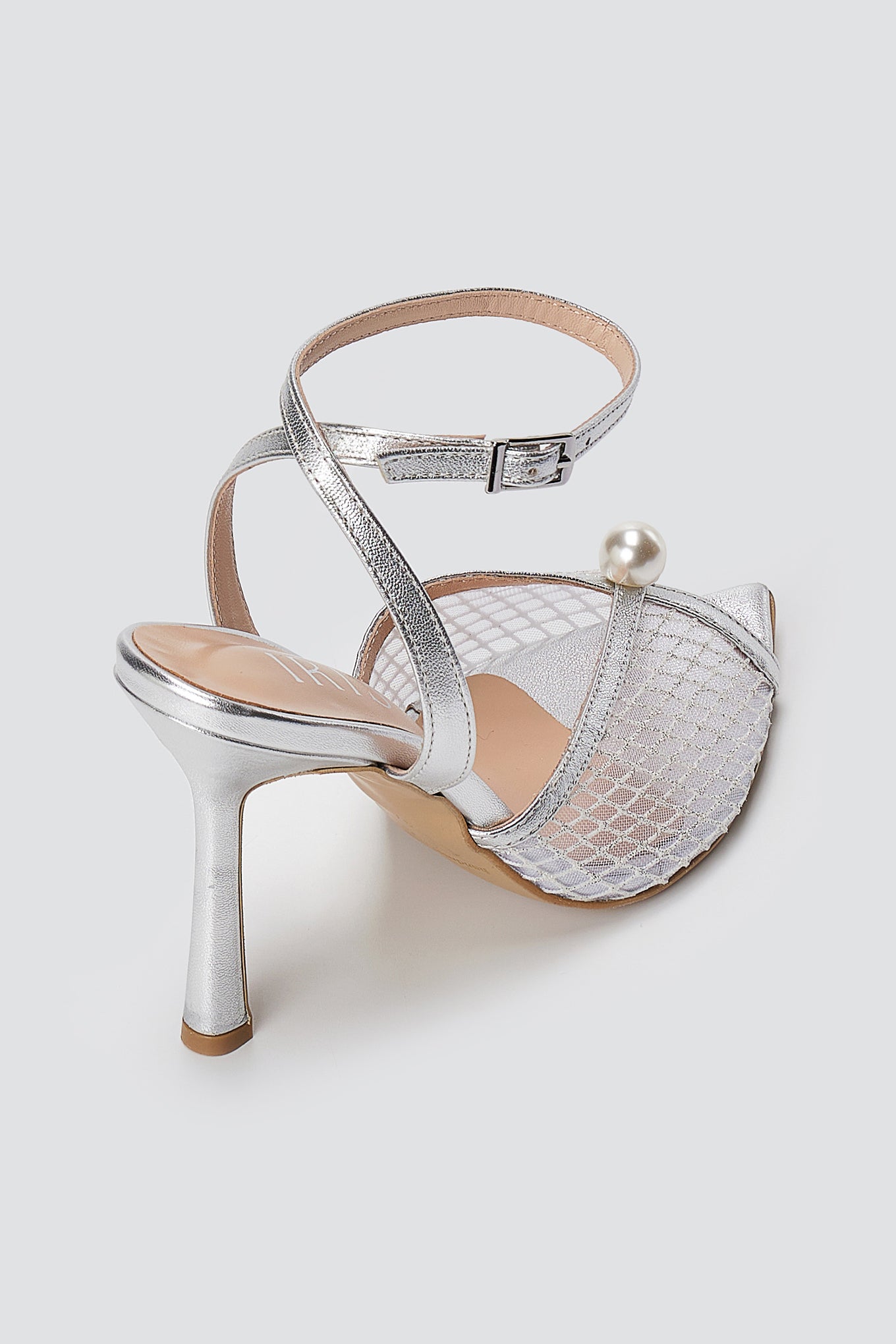 Pearl Detail Sandals Slim Heel - Silver