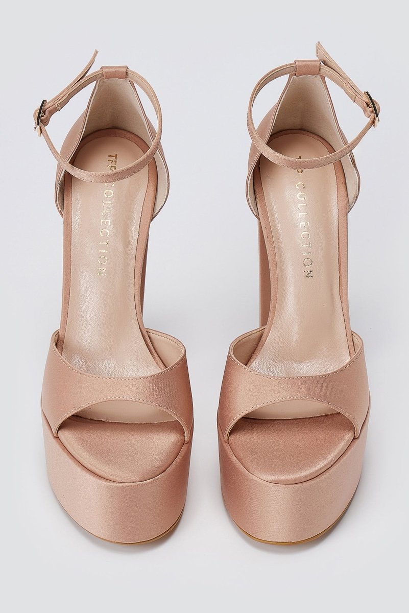 Platform Sandals - Nude Satin