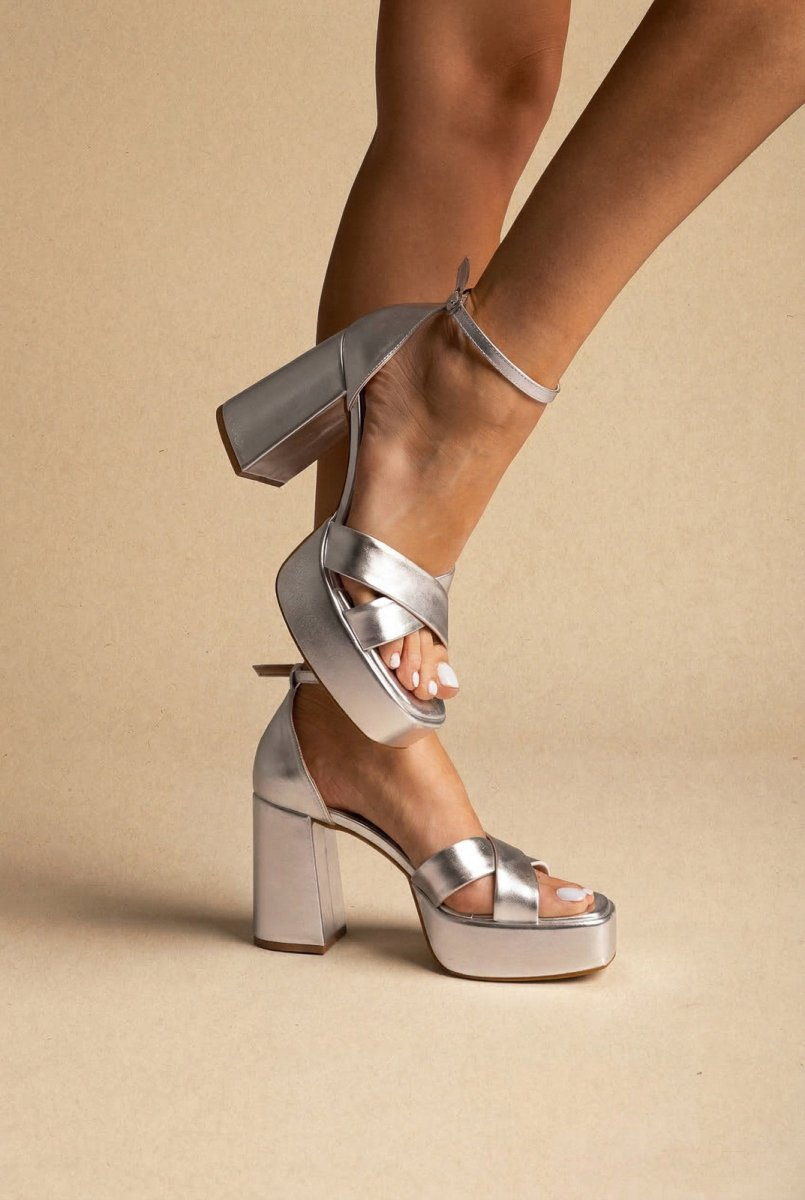 The TFP Platform Sandals in Silver offer a sophisticated blend of style and comfort for the modern woman. Featuring elegant crossover toe straps, a stable block heel, and a secure ankle strap, these platform sandals deliver both visual appeal and functional support. The closed heel design ensures your foot stays secure while the elevated platform provides a flattering lift that works seamlessly with any warm-weather wardrobe.