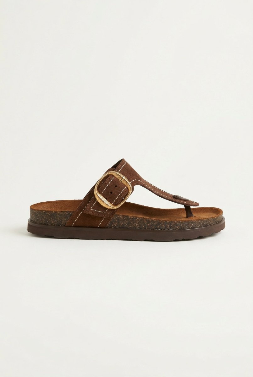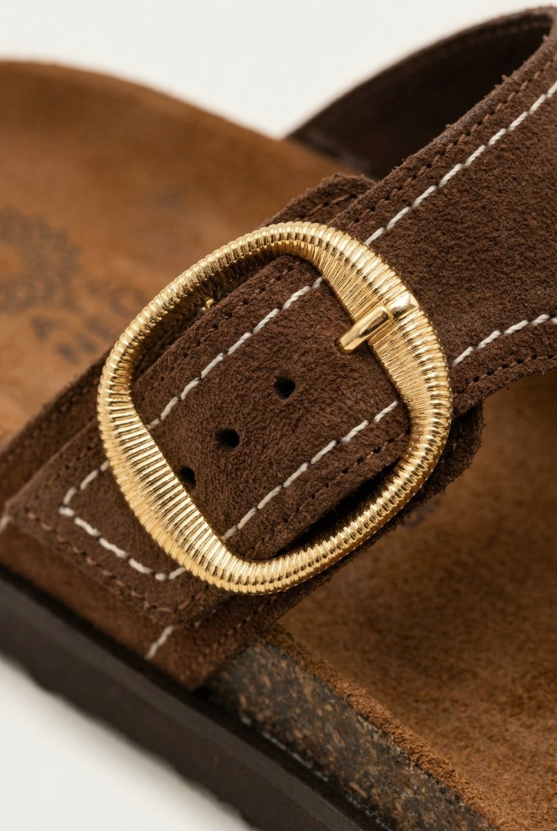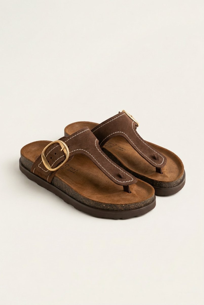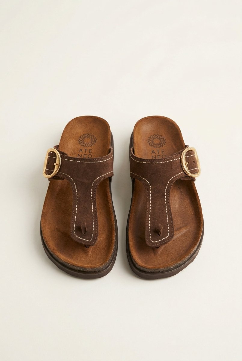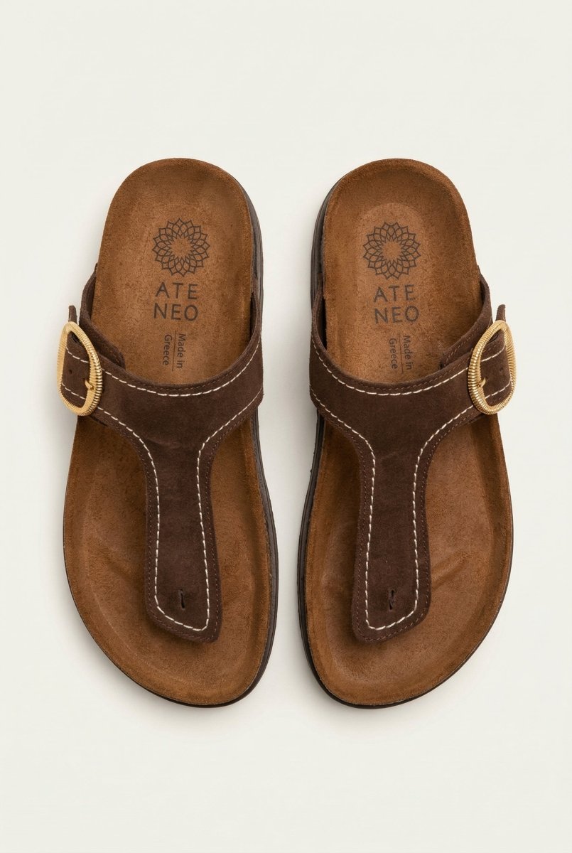 The ATENEO T Strap Sandals in Brown Suede combine timeless style with everyday comfort. Crafted from genuine suede leather, these T strap sandals feature a distinctive metal buckle detail for secure adjustment and a polished aesthetic. The anatomical suede footbed provides superior support, making these sandals an ideal choice for all-day wear. Perfect for casual outings, weekend errands, or relaxed social occasions.