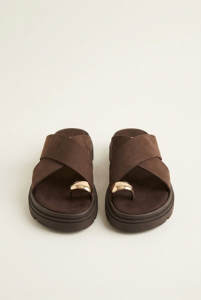 Toe Ring Flatform Sandals - Brown