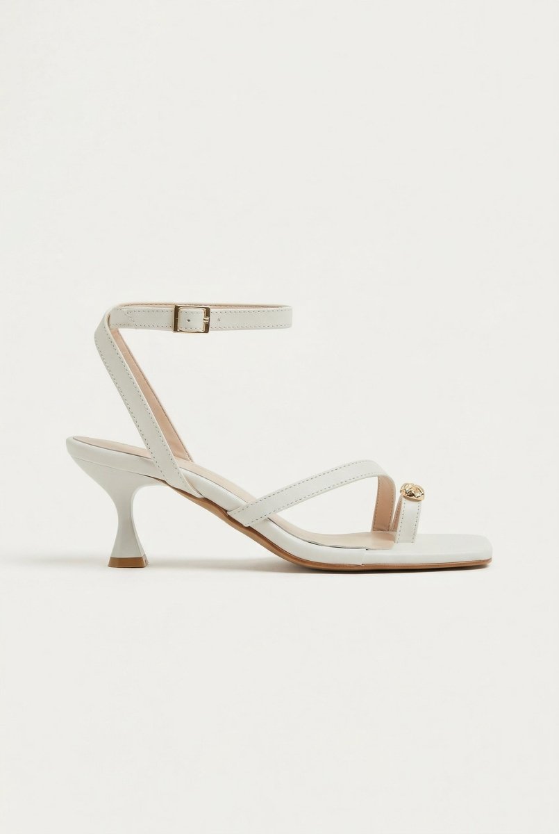 Toe Ring Sandals Kitten Heel - White Matte