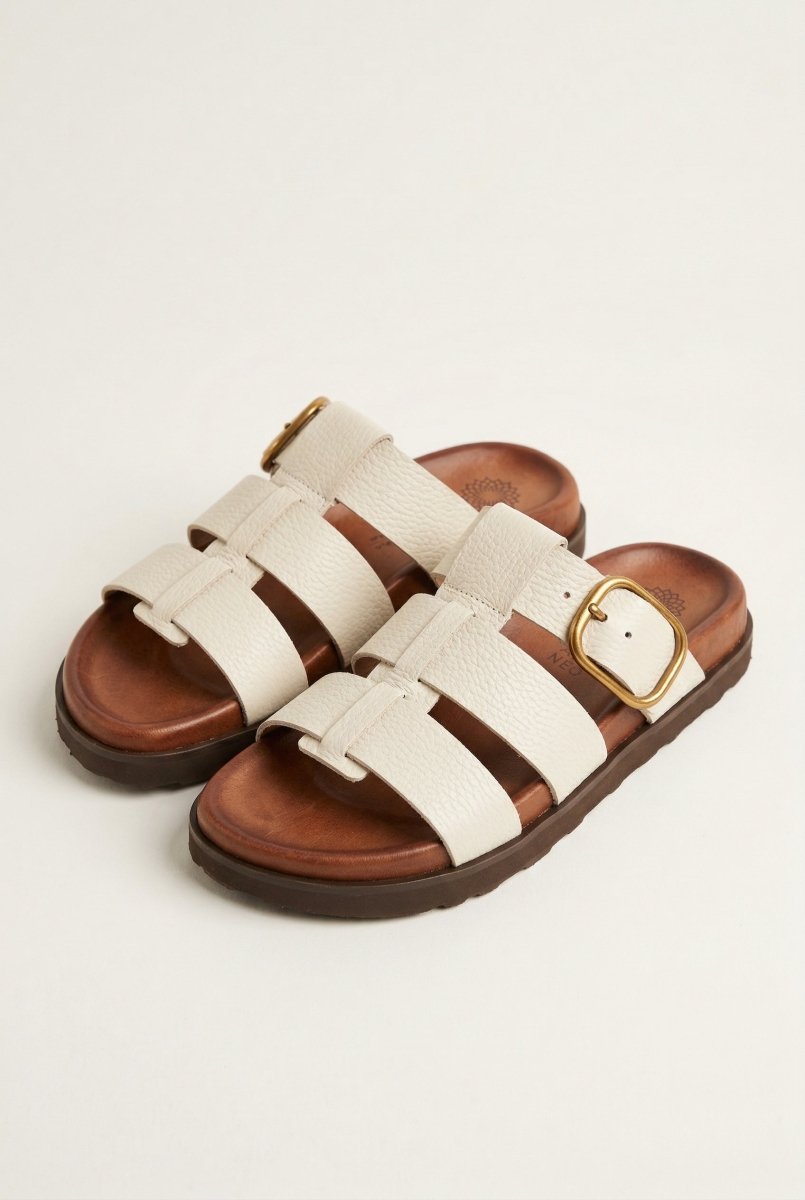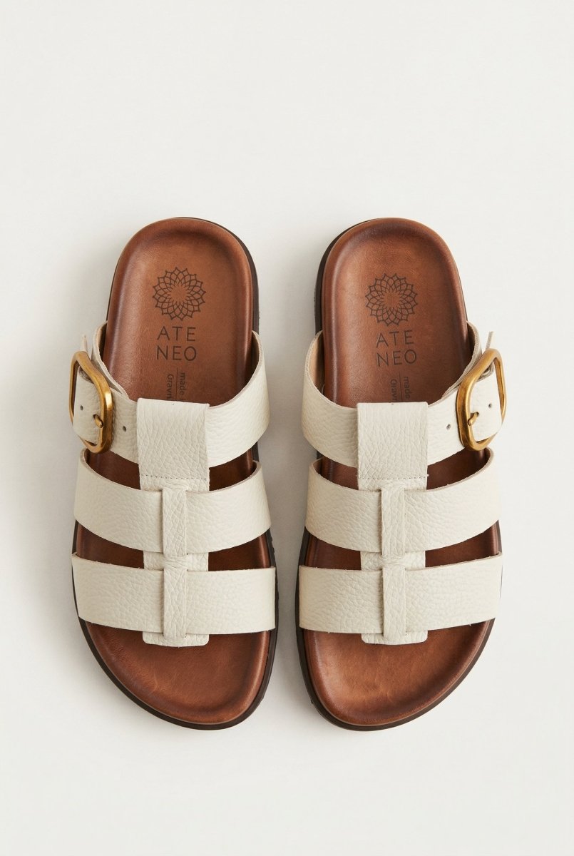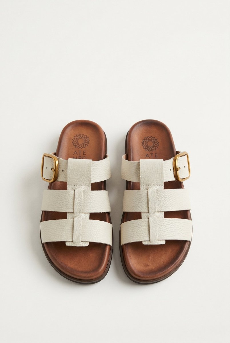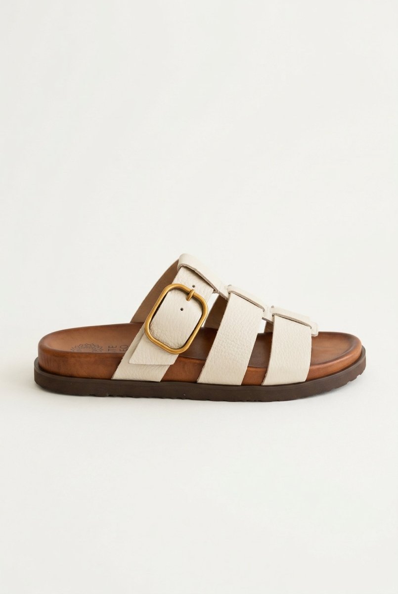 The ATENEO Triple Strap Sandals in Beige Matte combine sophisticated design with everyday practicality. Crafted from genuine leather, these sandals feature three adjustable straps and a distinctive side buckle detail that delivers both style and security. The lightweight sole and cushioned leather footbed make them an ideal choice for all-day wear, whether you're running errands or enjoying casual outings.