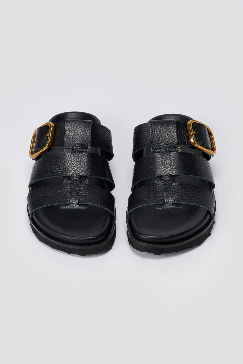 The ATENEO Triple Strap Sandals Buckle Detail in Black Matte combine sophisticated design with everyday practicality. Crafted from genuine leather, these sandals feature three adjustable straps and a striking side buckle that delivers both style and security. Perfect for casual outings, travel, or relaxed weekend wear, these versatile sandals offer the ideal balance of comfort and contemporary aesthetics.