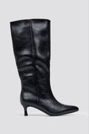 Pointed Croc-Effect Boots with Stiletto Heel - Black Croc