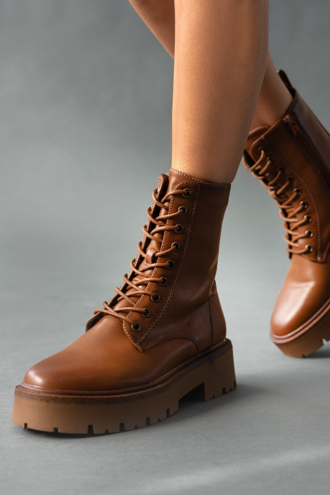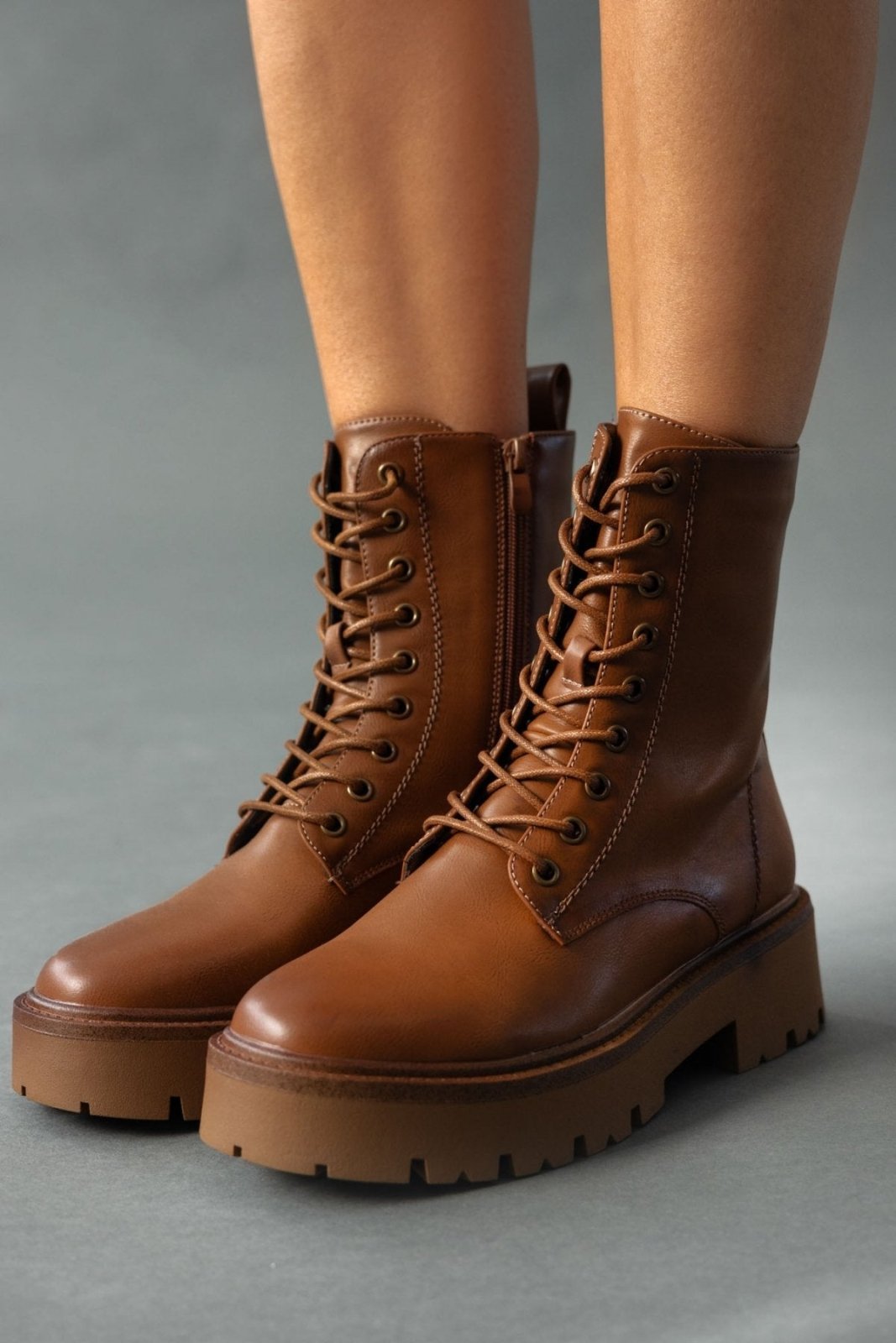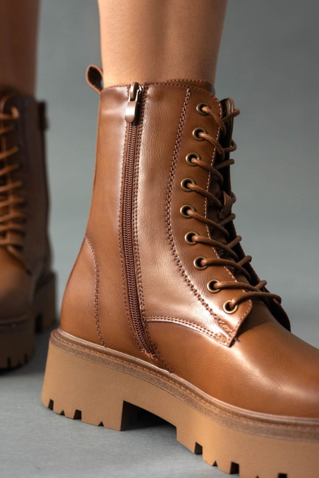Αρβυλάκια με τρακτερωτή σόλα. Κλείνουν μς φερμουάρ στο πίσω μέρος. Θηλάκι στο πίσω μέρος.
