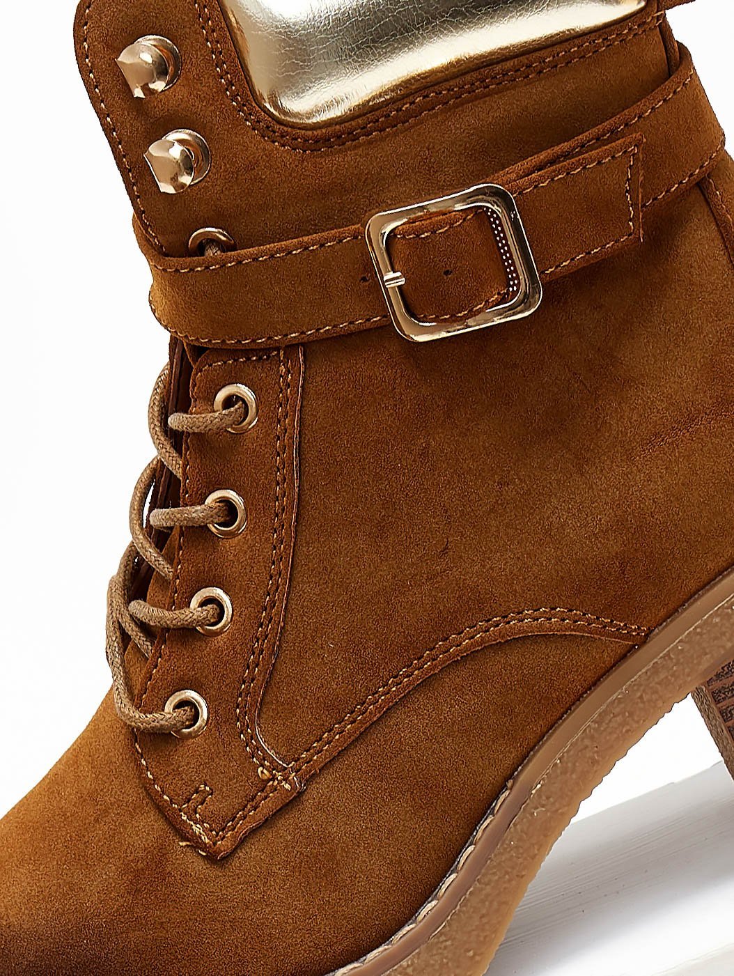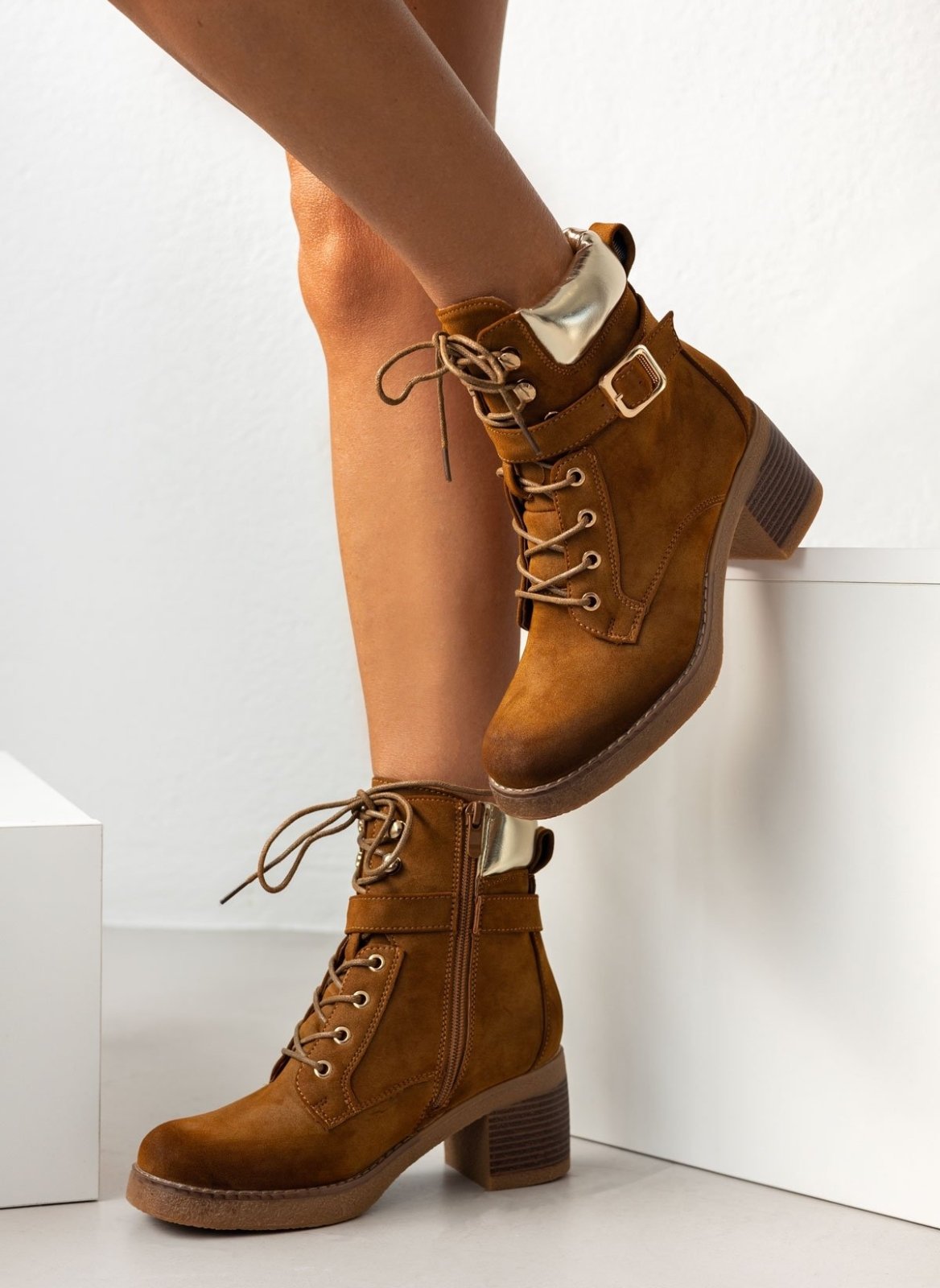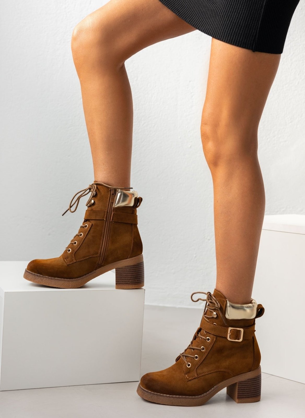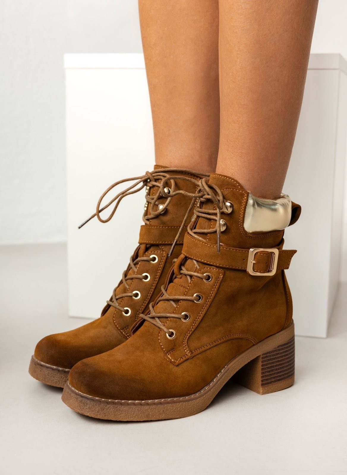 Αρβυλάκια με κορδόνια Erynn. Έχουν καπιτονέ λεπτομέρεια σε μεταλλικό χρώμα στο πίσω μέρος. Ζωνάκι με μεταλλικό κούμπωμα. Κρεπ σόλα με εφέ ξύλου στο τακούνι.