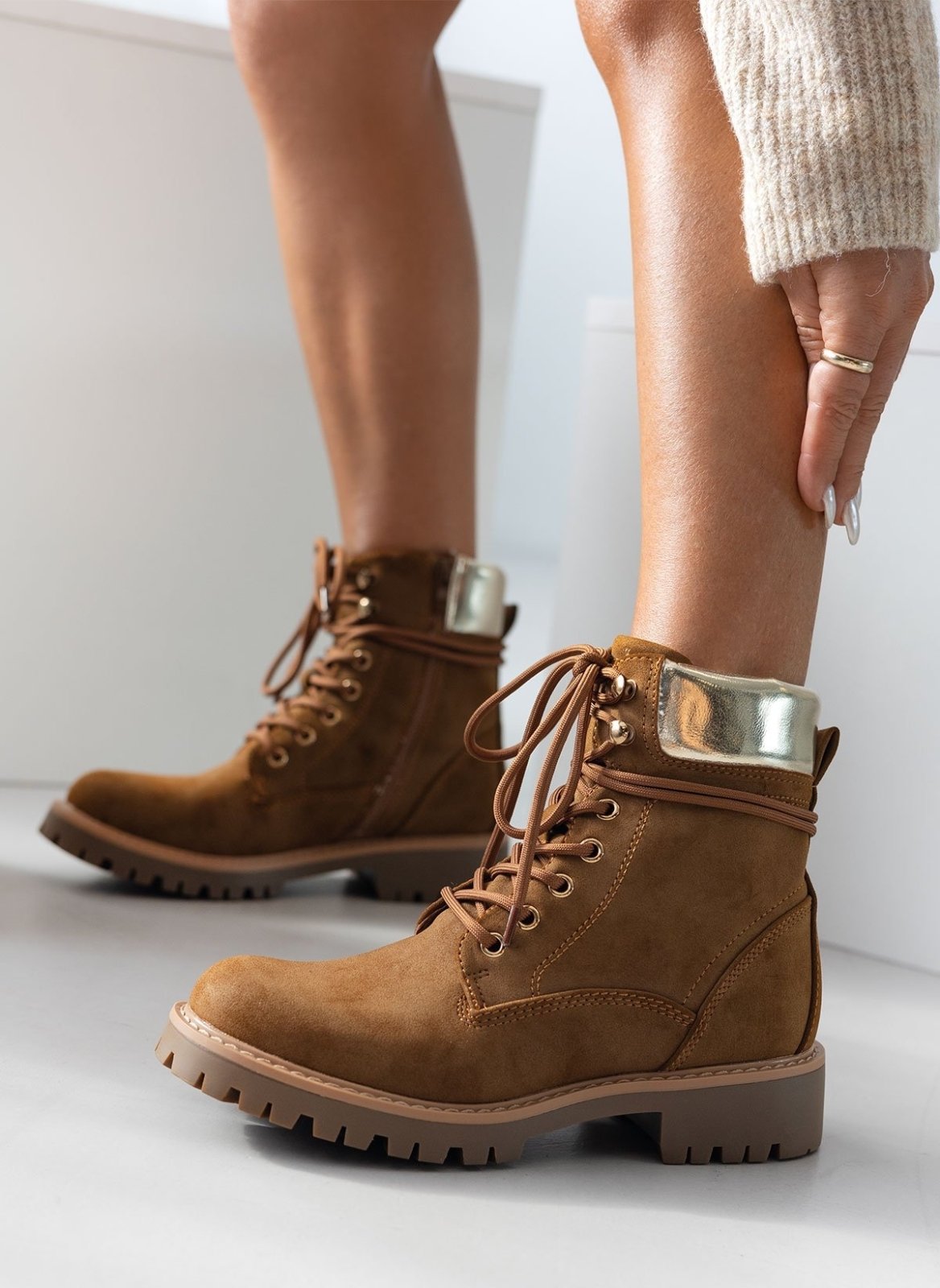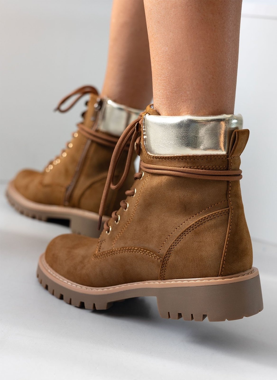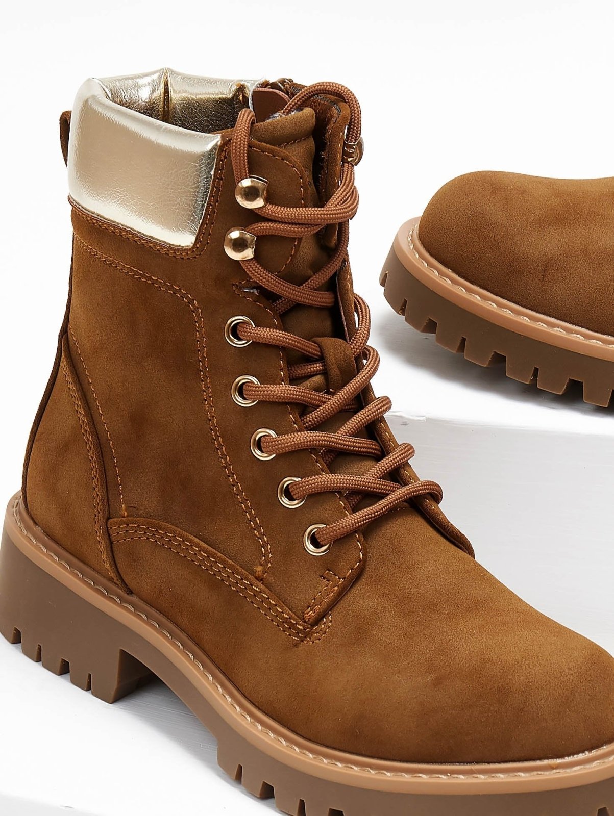 Αρβυλάκια Erynn. Έχουν λεπτομέρεια μεταλλικό χρώμα στο πίσω μέρος. Προσαρμόζονται με κορδόνια. Κλείνουν με φερμουάρ στην εσωτερική τους πλευρά. Τρακτερωτή σόλα