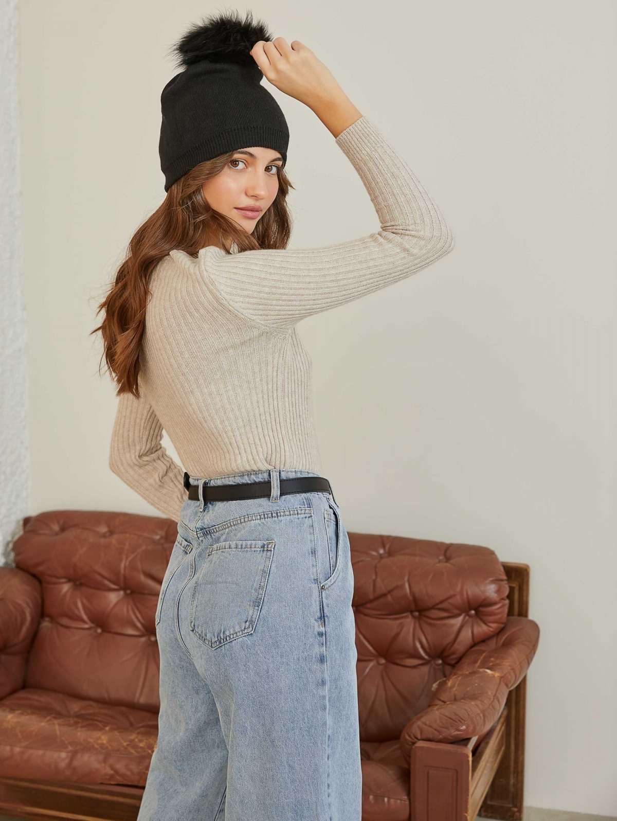 Basic πλεκτός σκούφος με pon pon - Μαύρο