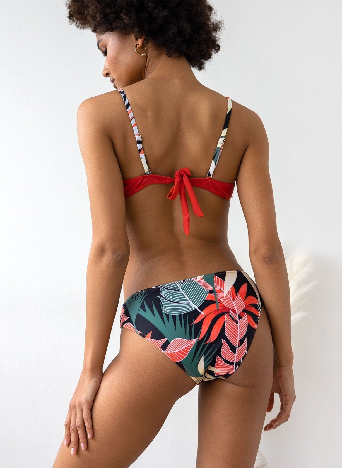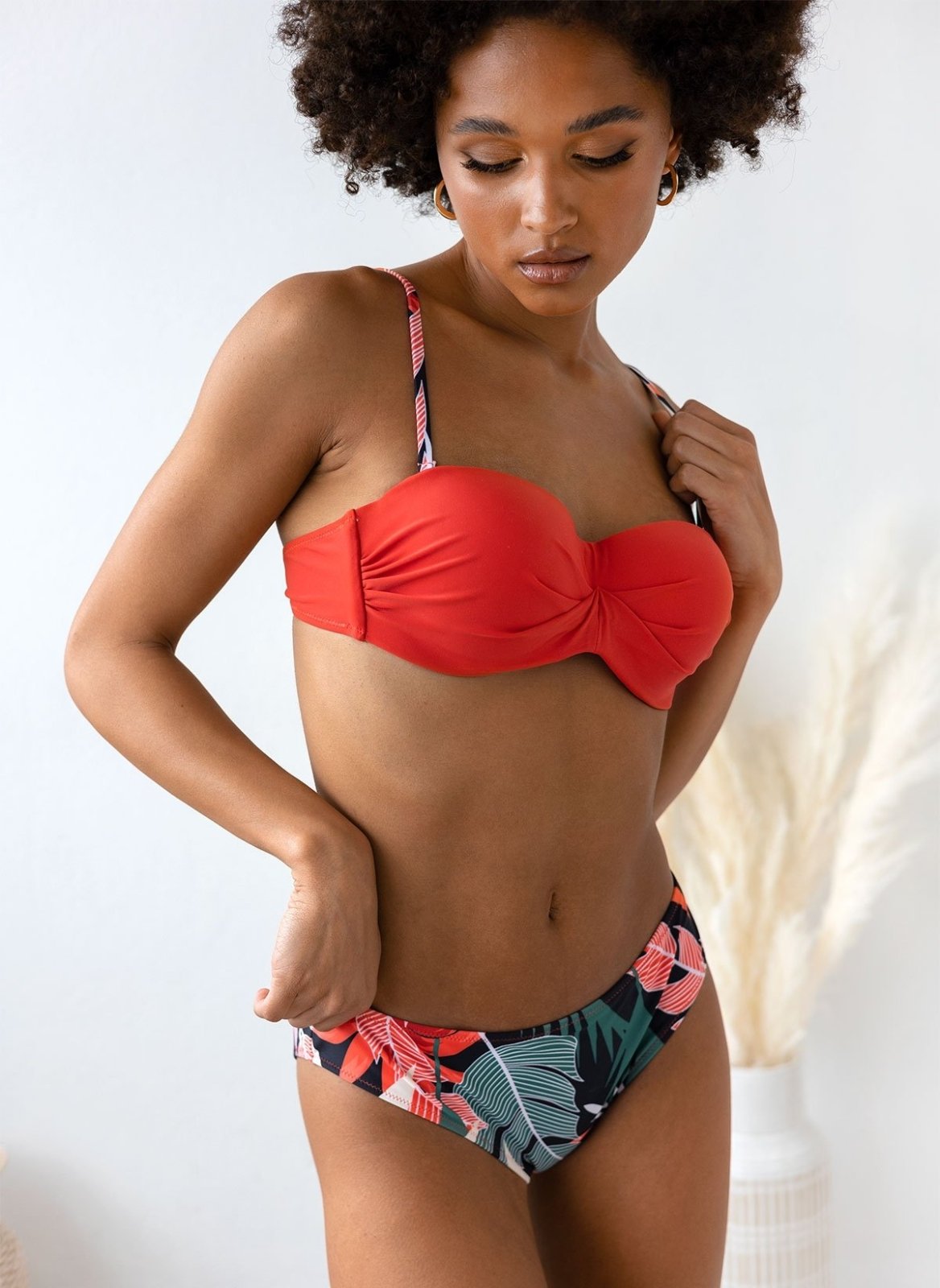 Bikini Set με φλοράλ print. Το τοπ είναι strapless με σταθερή ενίσχυση. Έχει σχέδιο λεπτές σούρες. Περιλαμβάνεται και σετ μαξιλαράκια επιπλέον ενίσχυσης. Το σλιπ είναι φλοράλ . Πλήρης κάλυψη
