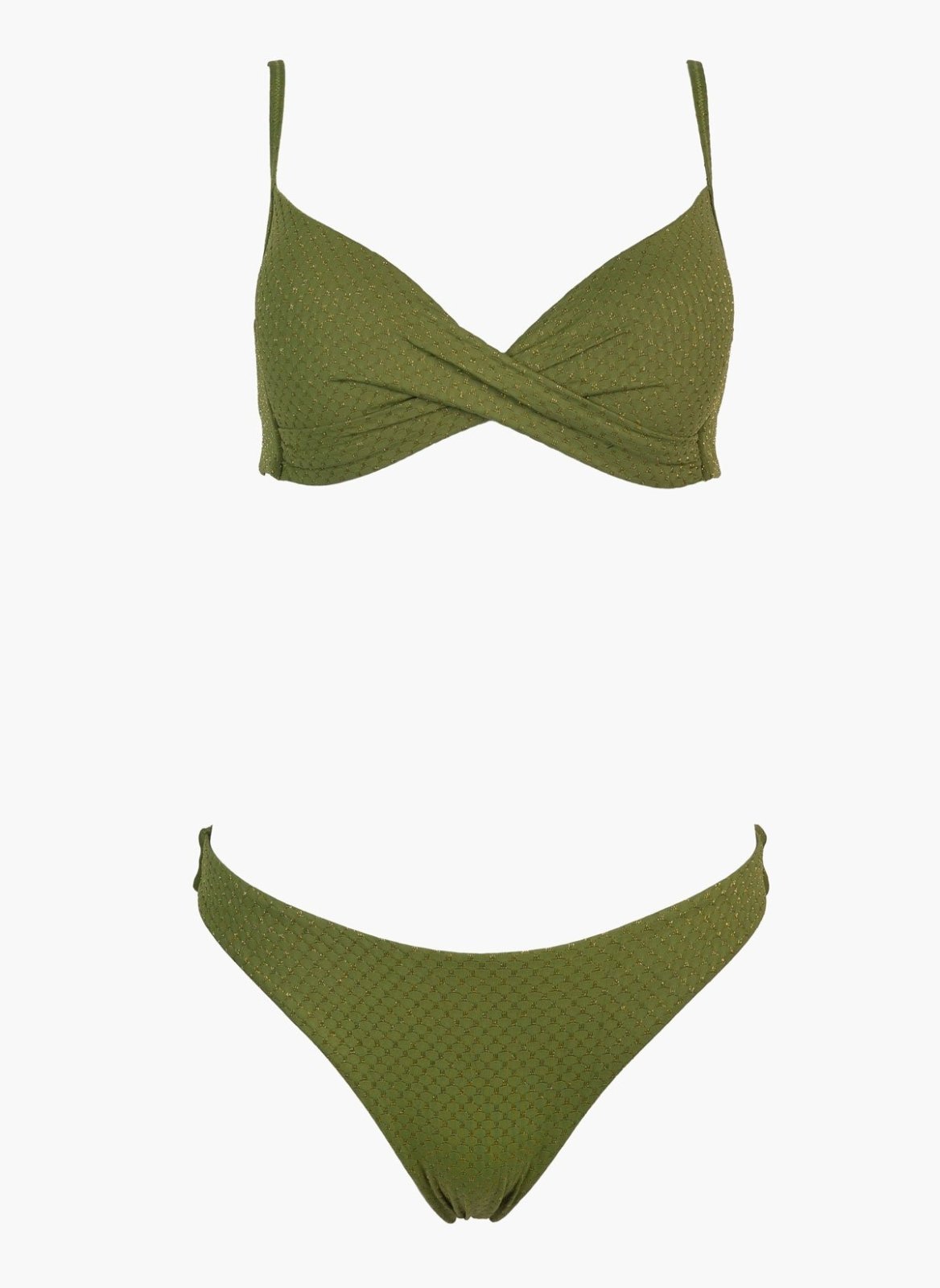 Bikini set με glitter. Το τοπ έχει σταθερή ενίσχυση. Το σλιπ είναι ψηλόμεσο. Πλήρης κάλυψη.