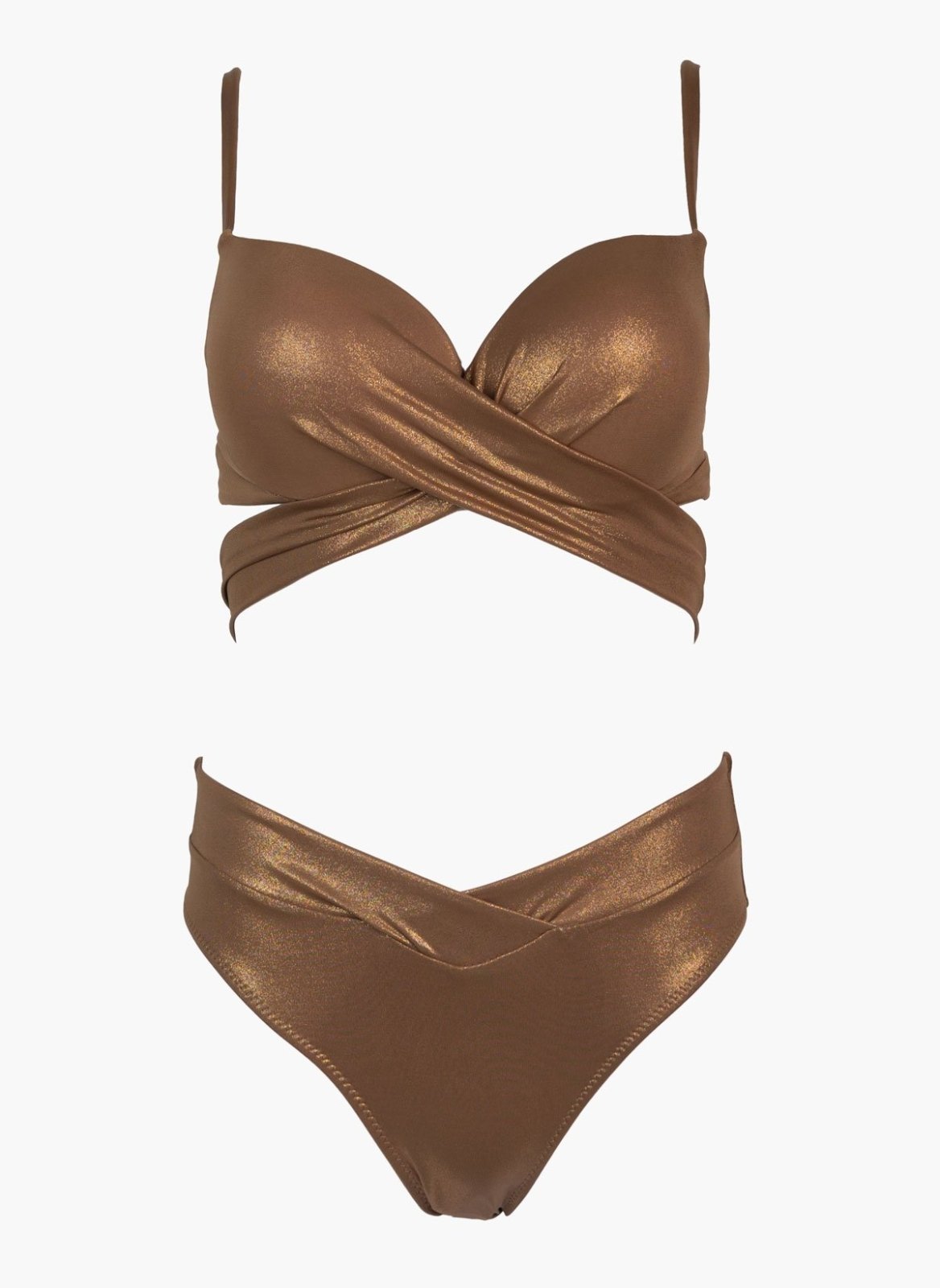 Bikini Set lurex με ψηλόμεσο slip - Μπεζ