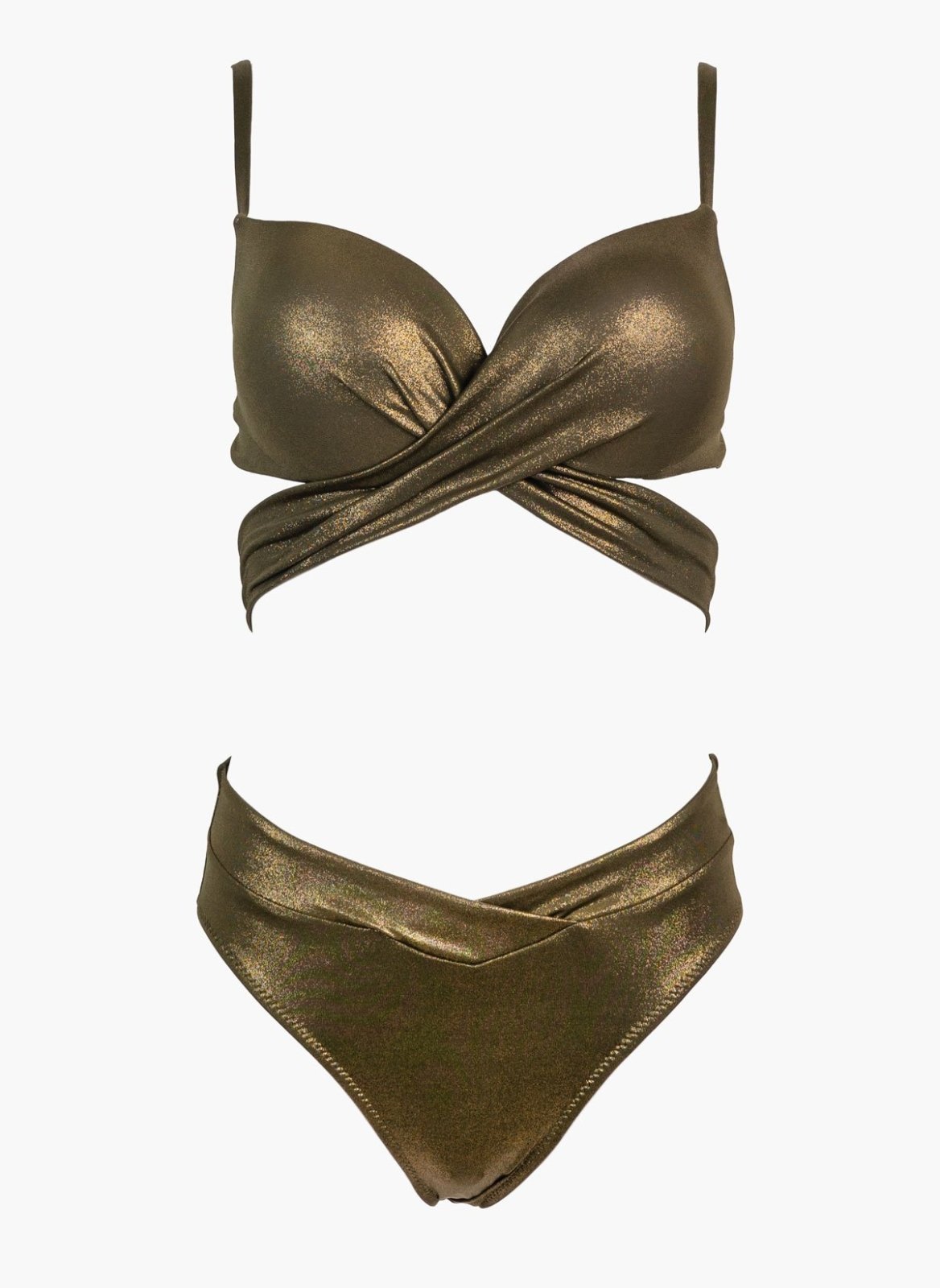 Bikini Set lurex με ψηλόμεσο slip - Χακί