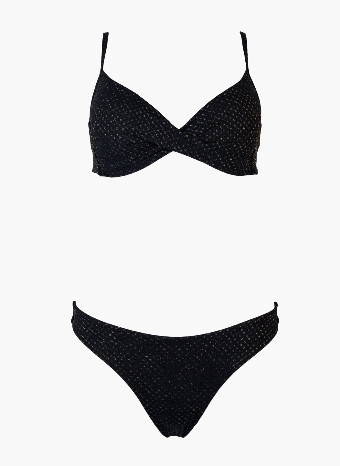 Bikini set με glitter. Το τοπ έχει σταθερή ενίσχυση. Το σλιπ είναι ψηλόμεσο. Πλήρης κάλυψη.