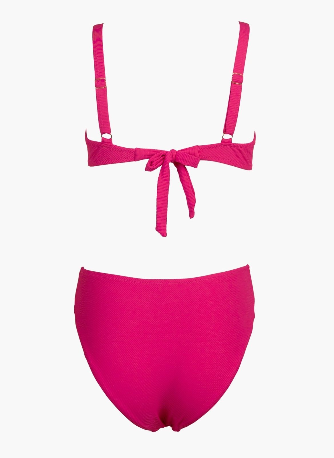 Bikini set ριμπ με μεταλλικούς κρίκους - Φούξια