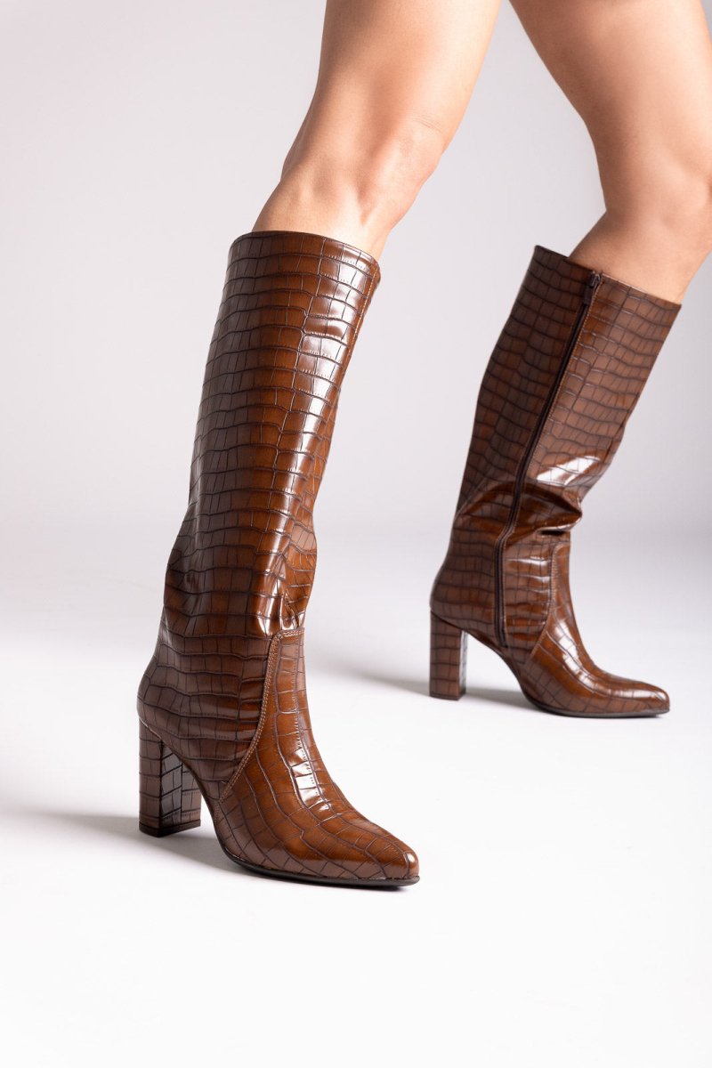 Block Heel Boots Ragazza 0860 - Brown Croc
