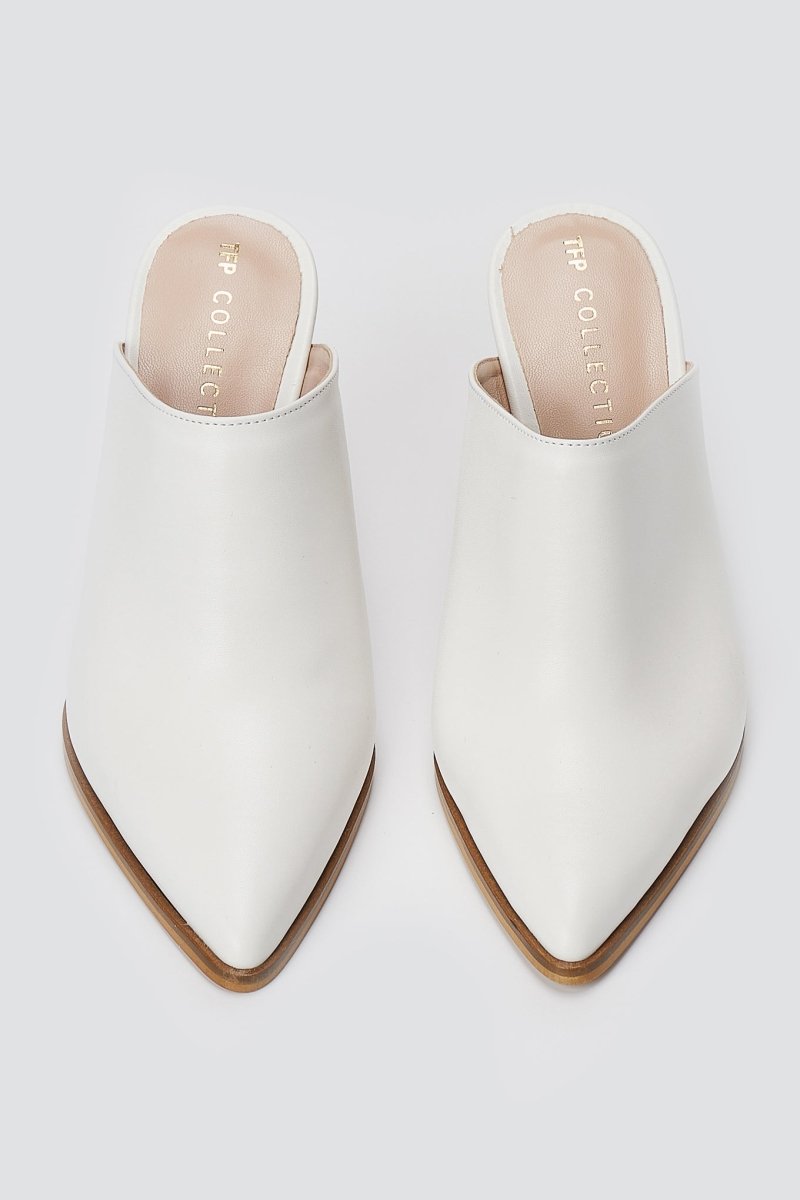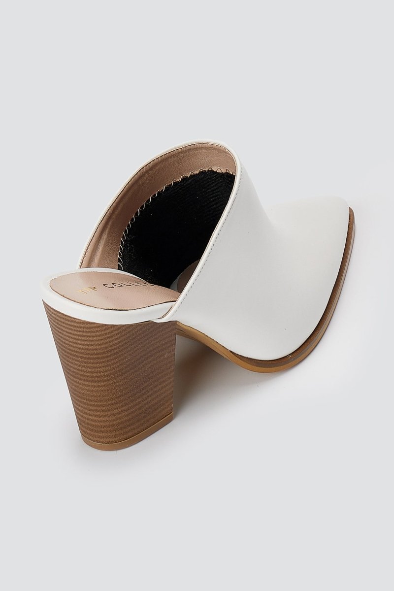Pointed toe clogs with a high block heel for stable lift and refined style. Structured silhouette with balanced comfort, crafted for modern women, day to night.