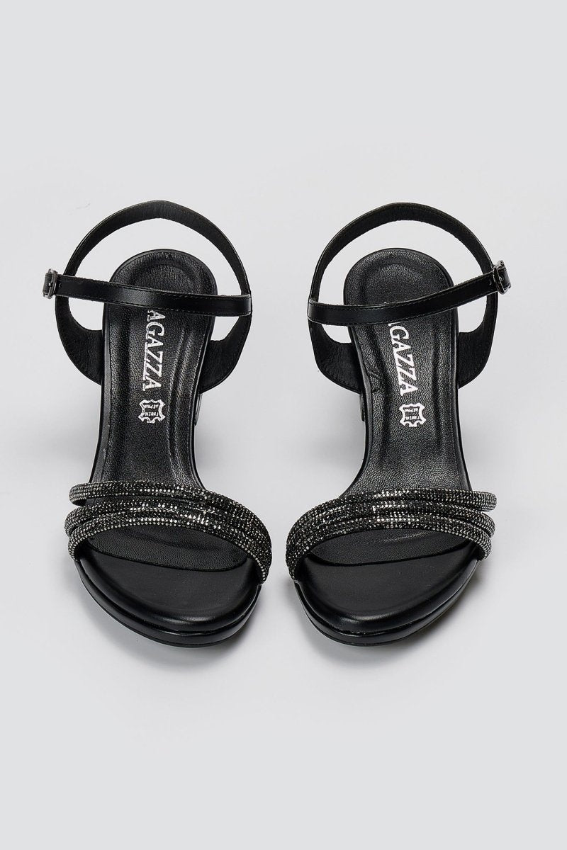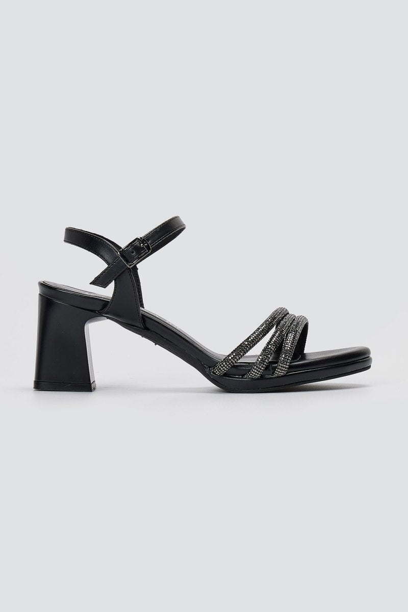 Block heel sandals with sparkling rhinestone straps and a secure ankle strap. Balanced lift, cushioned comfort and refined shine—crafted for modern women.