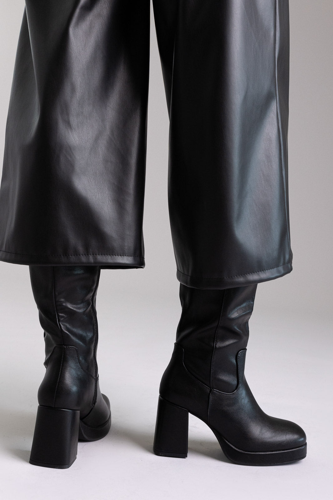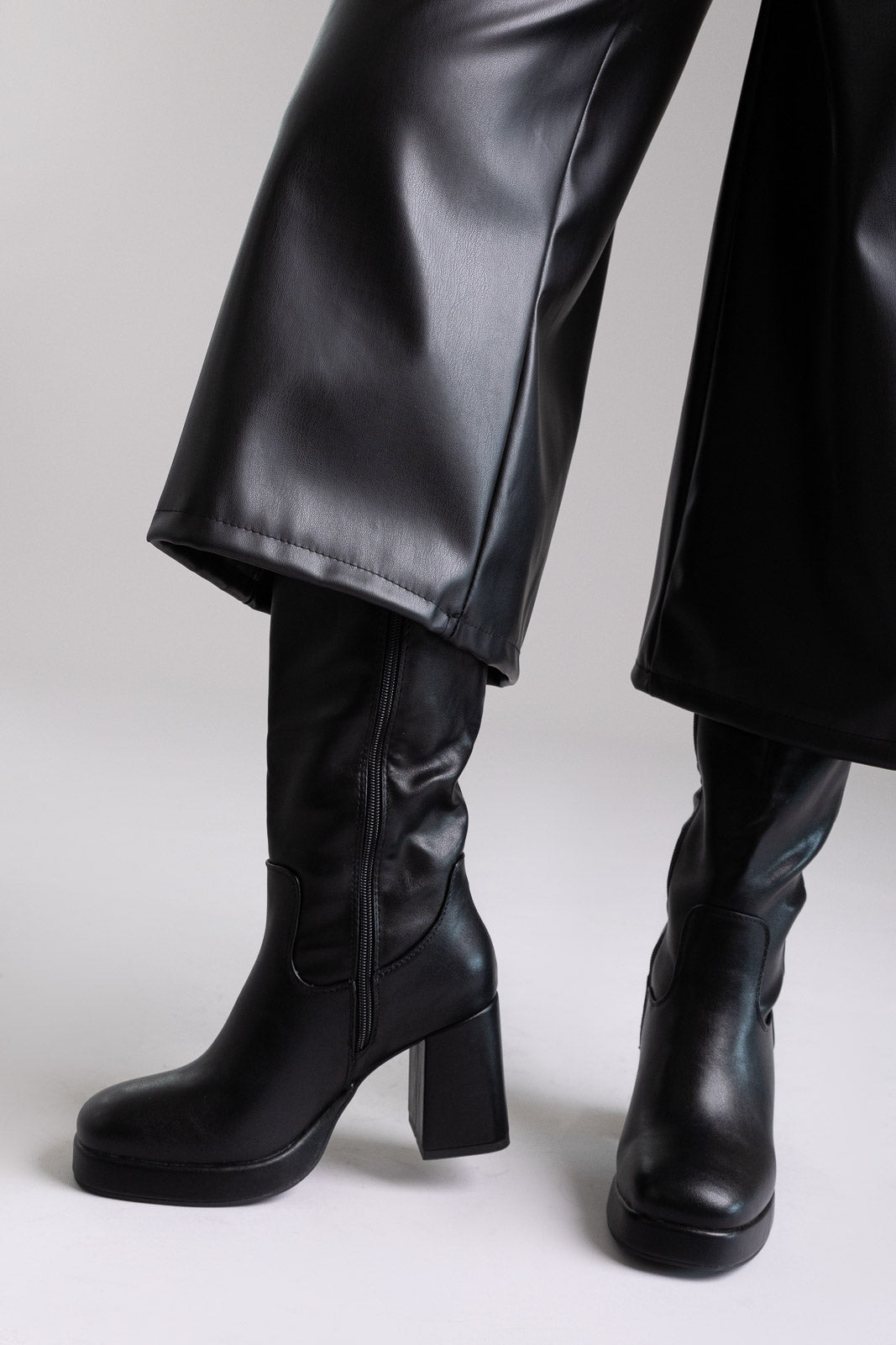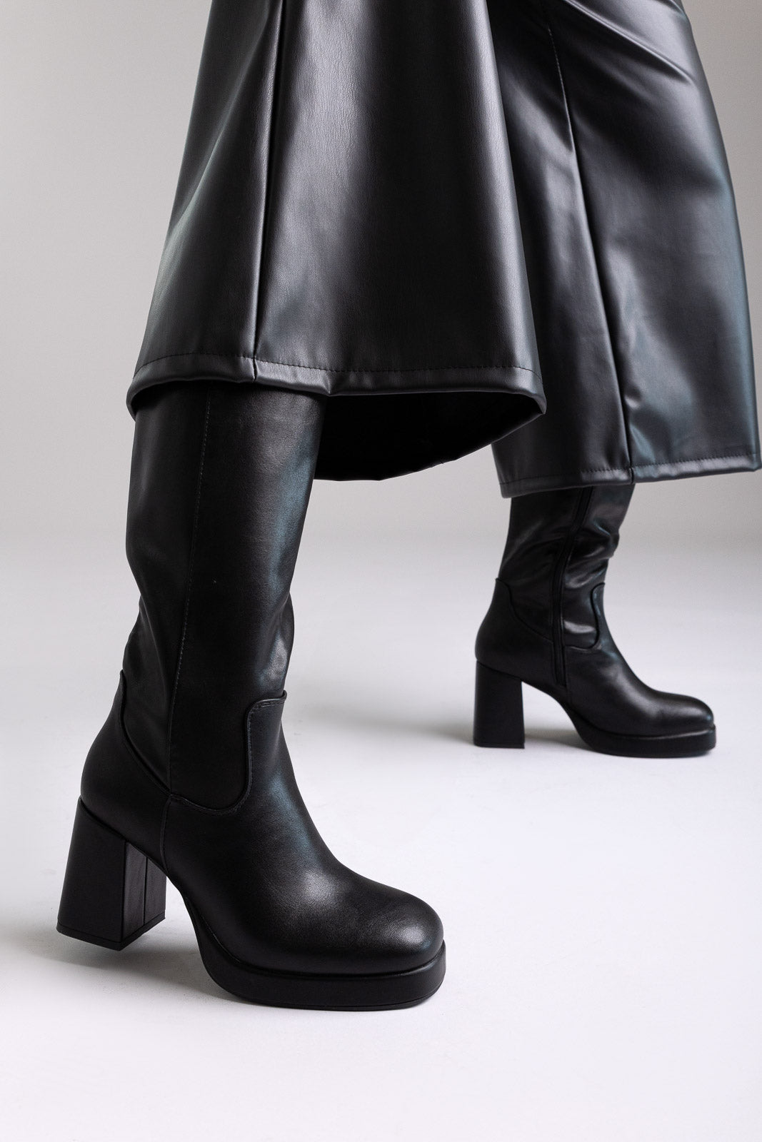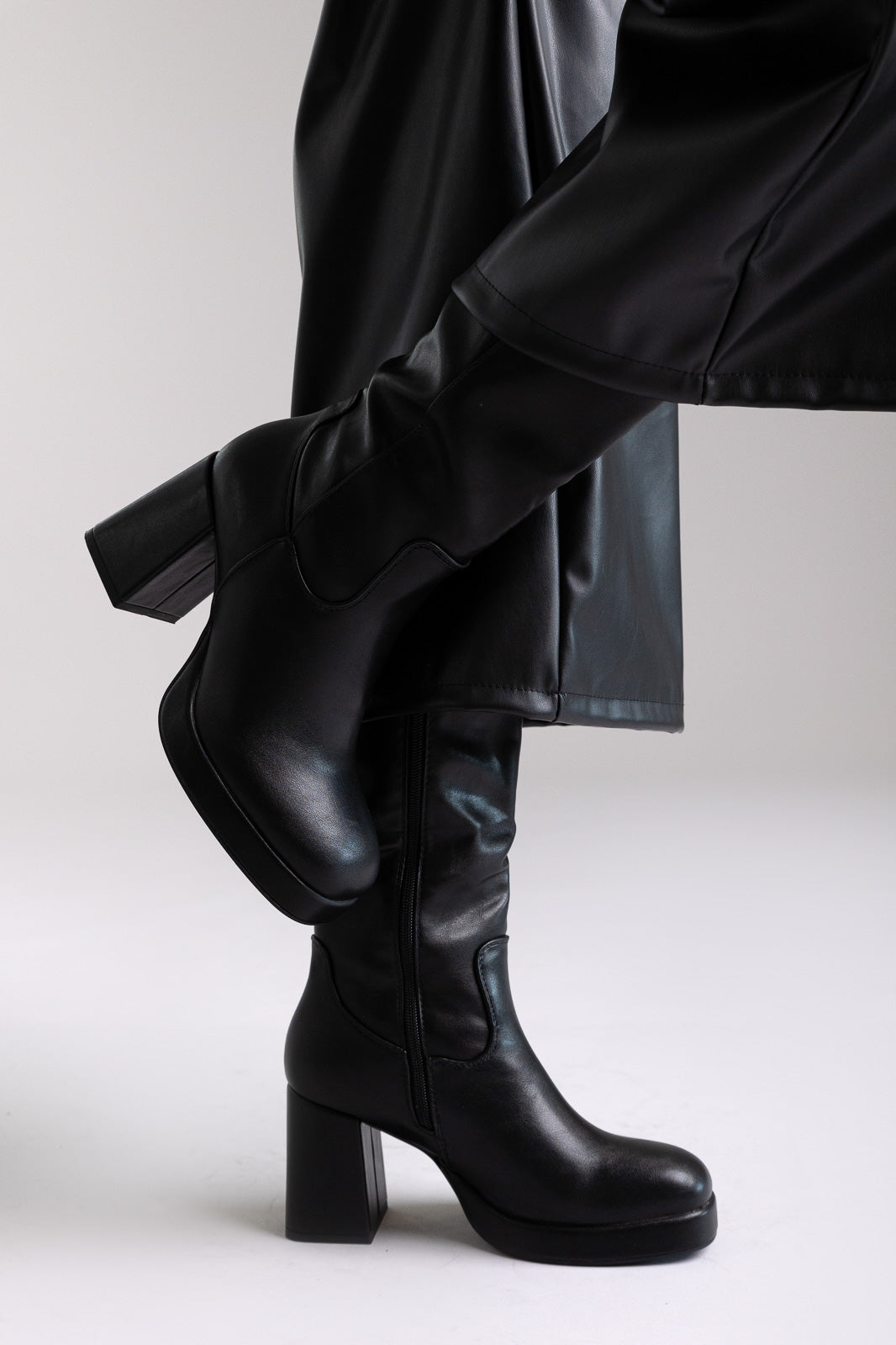 Platform boots with high block heel, square toe and side zip. Clean lines and balanced lift for day-to-night comfort and polished style.