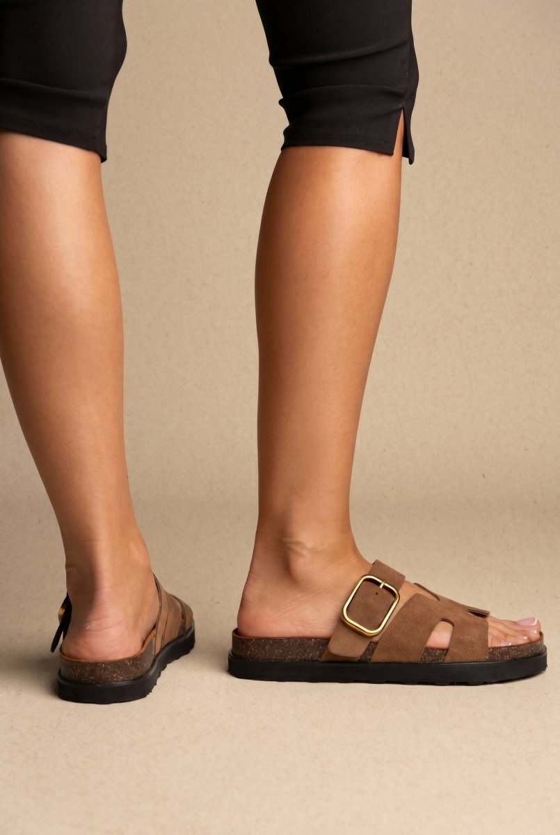 Buckle Sandals Anatomical Footbed - Taupe Suede