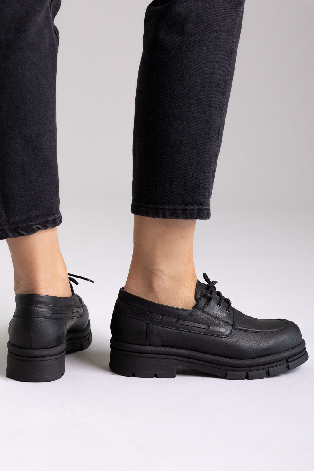 Genuine leather Oxfords with chunky sole and classic lace up design. Elegant structure and cushioned comfort crafted for modern everyday wear.