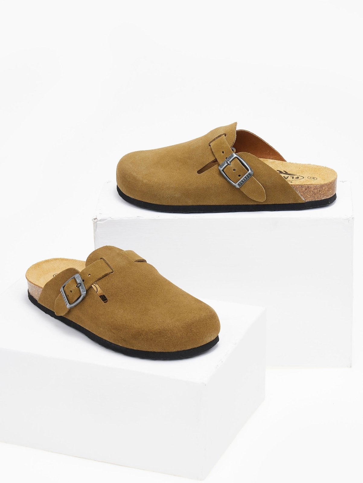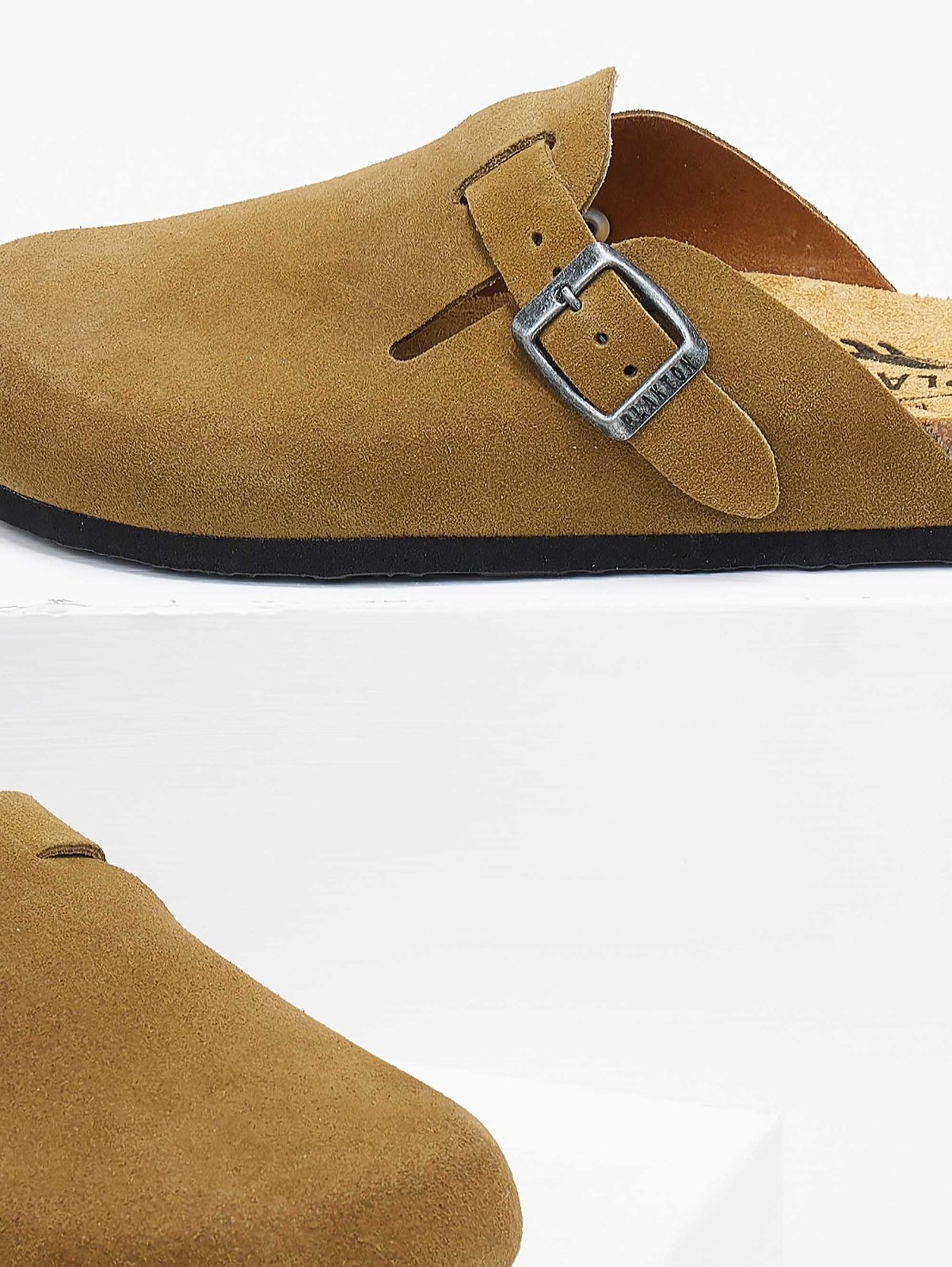 Clogs καστόρινα Plakton. Έχουν λουράκι με μικρό τοκά για καλύτερη εφαρμογή στο κουτεπιέ. Ανατομικός καστόρινος πάτος με Memory Cushion Technology. Φυσικός φελλός στη σόλα. Made in Spain.