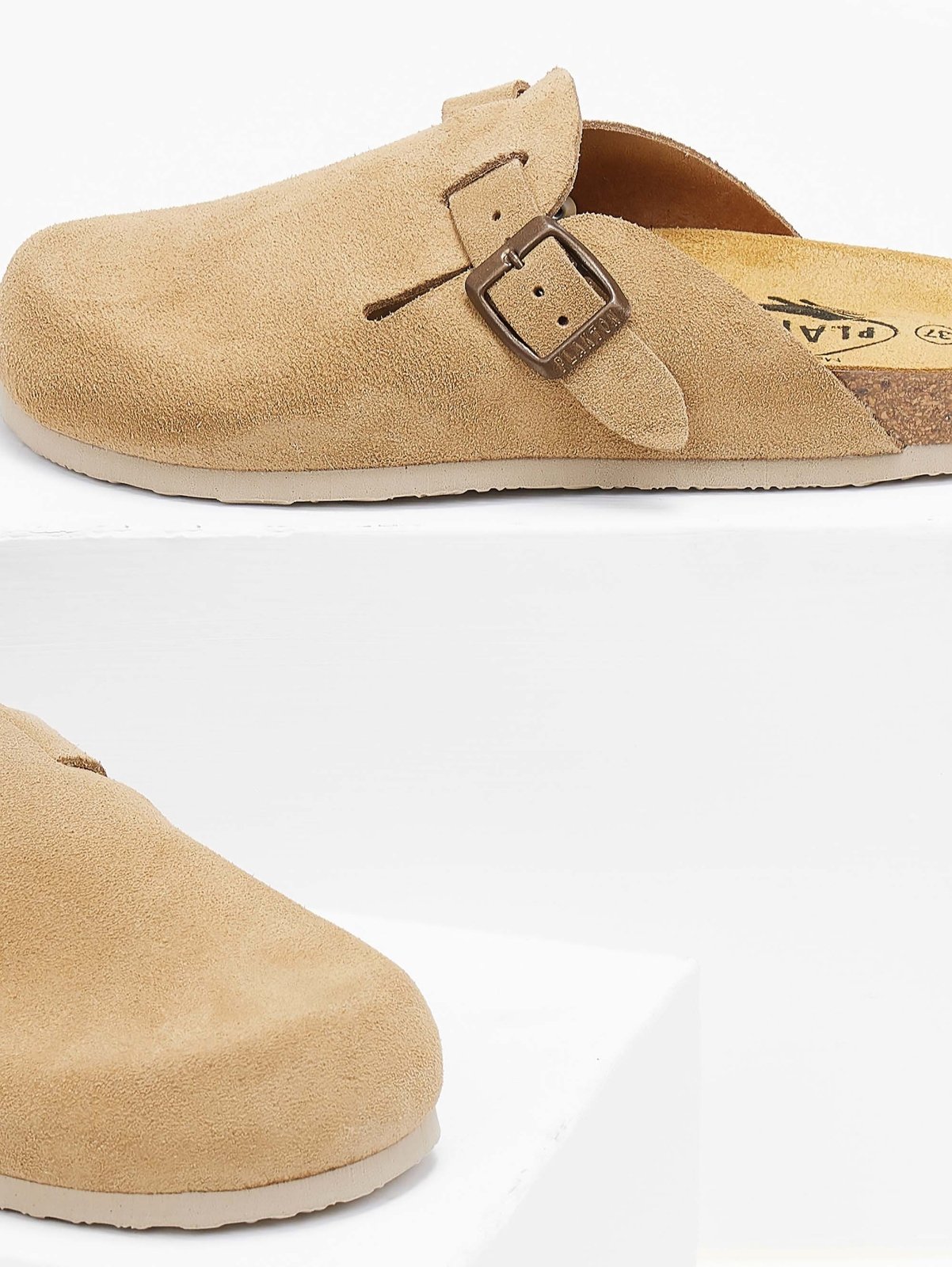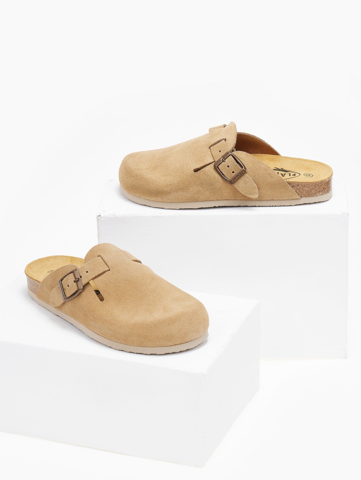 Clogs καστόρινα Plakton. Έχουν λουράκι με μικρό τοκά για καλύτερη εφαρμογή στο κουτεπιέ. Ανατομικός καστόρινος πάτος με Memory Cushion Technology. Φυσικός φελλός στη σόλα. Made in Spain.