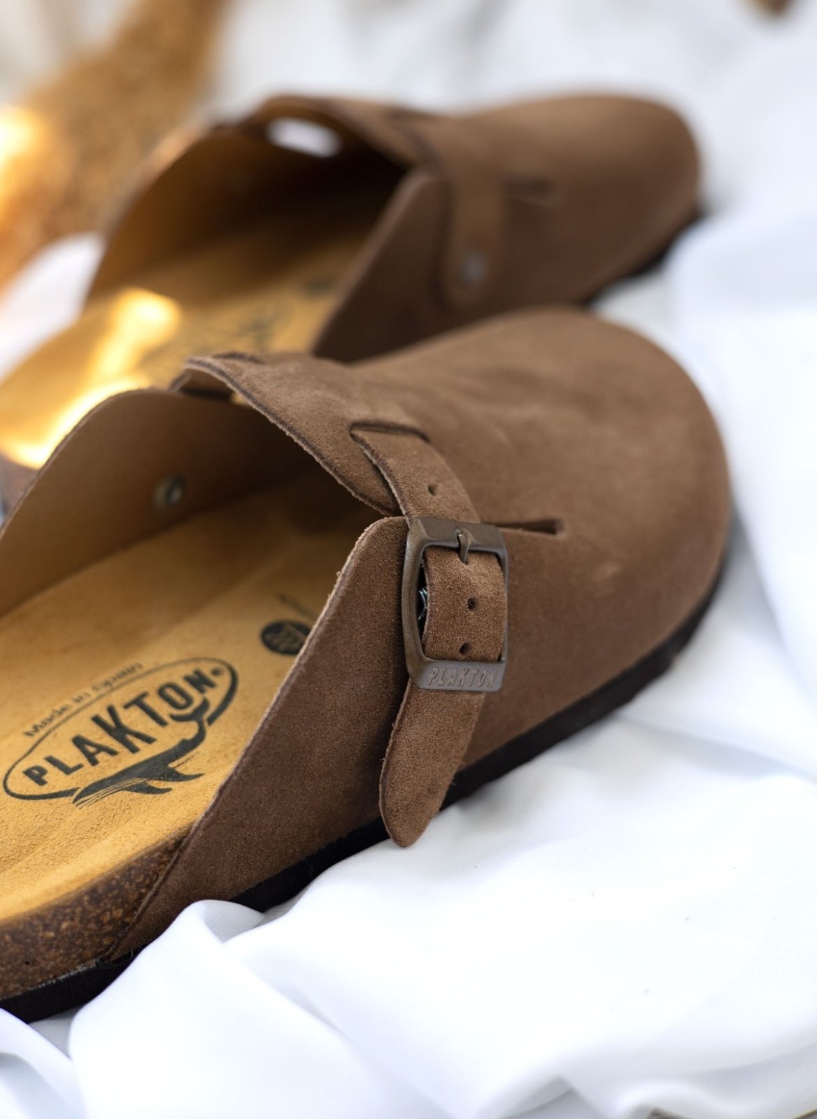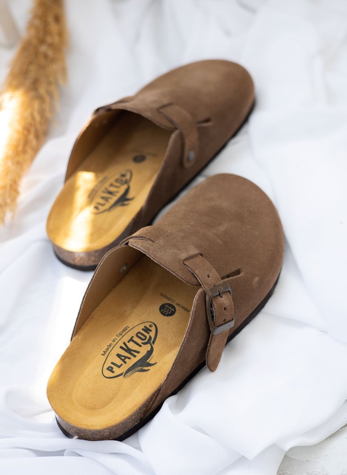 Clogs καστόρινα Plakton. Έχουν λουράκι με μικρό τοκά για καλύτερη εφαρμογή στο κουτεπιέ. Ανατομικός καστόρινος πάτος με Memory Cushion Technology. Φυσικός φελλός στη σόλα. Made in Spain.