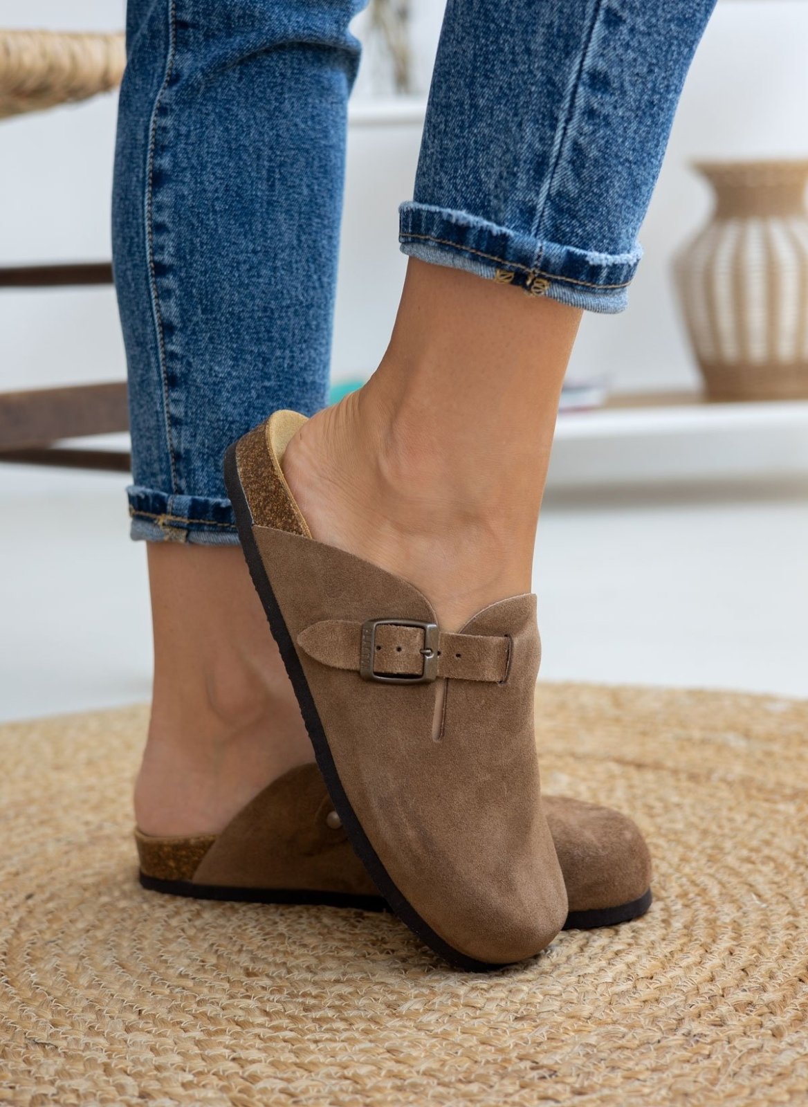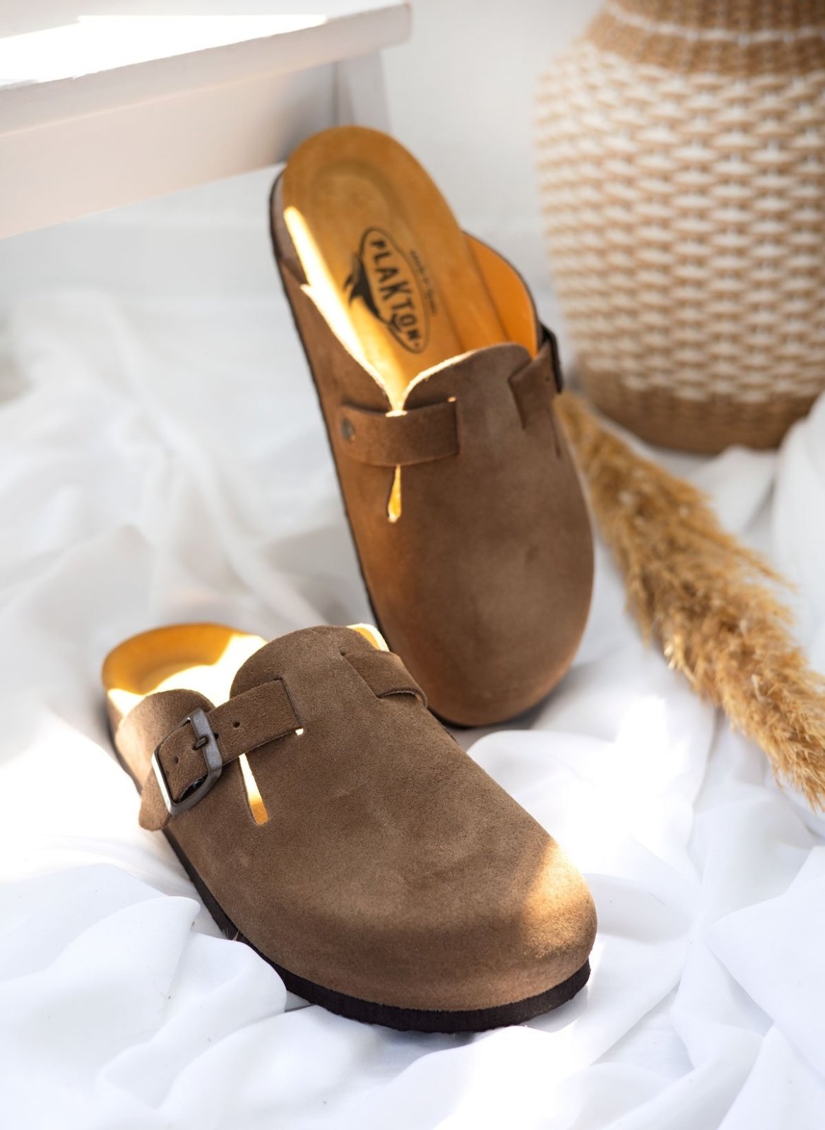 Clogs ανατομικά από δέρμα καστόρι Plakton 181539 - Τάουπε