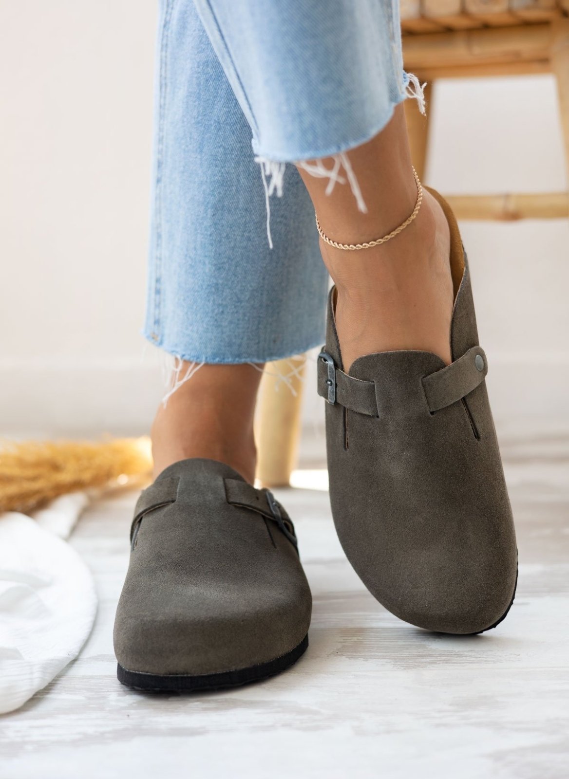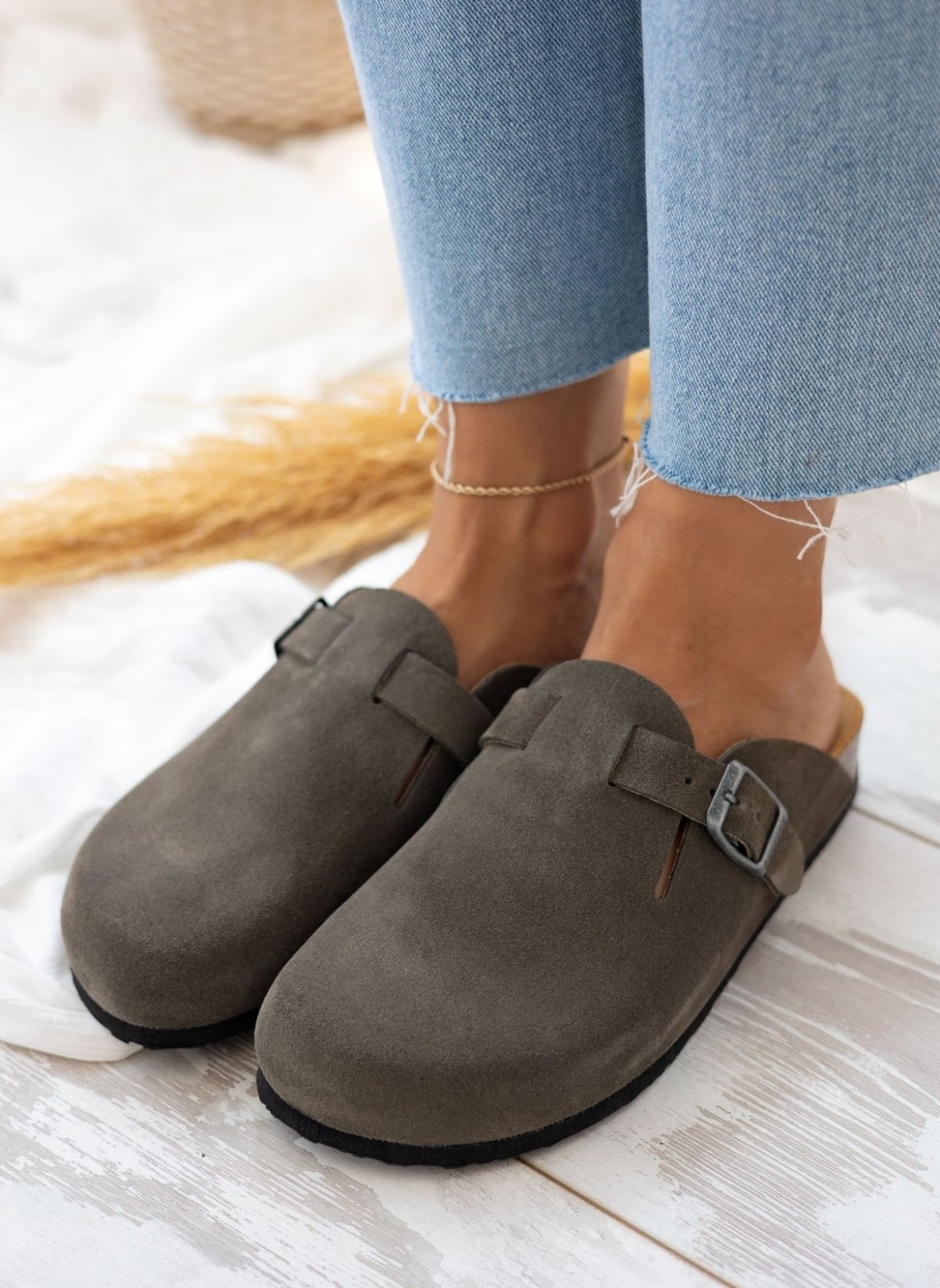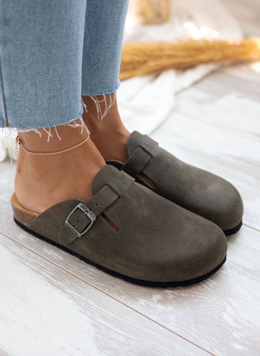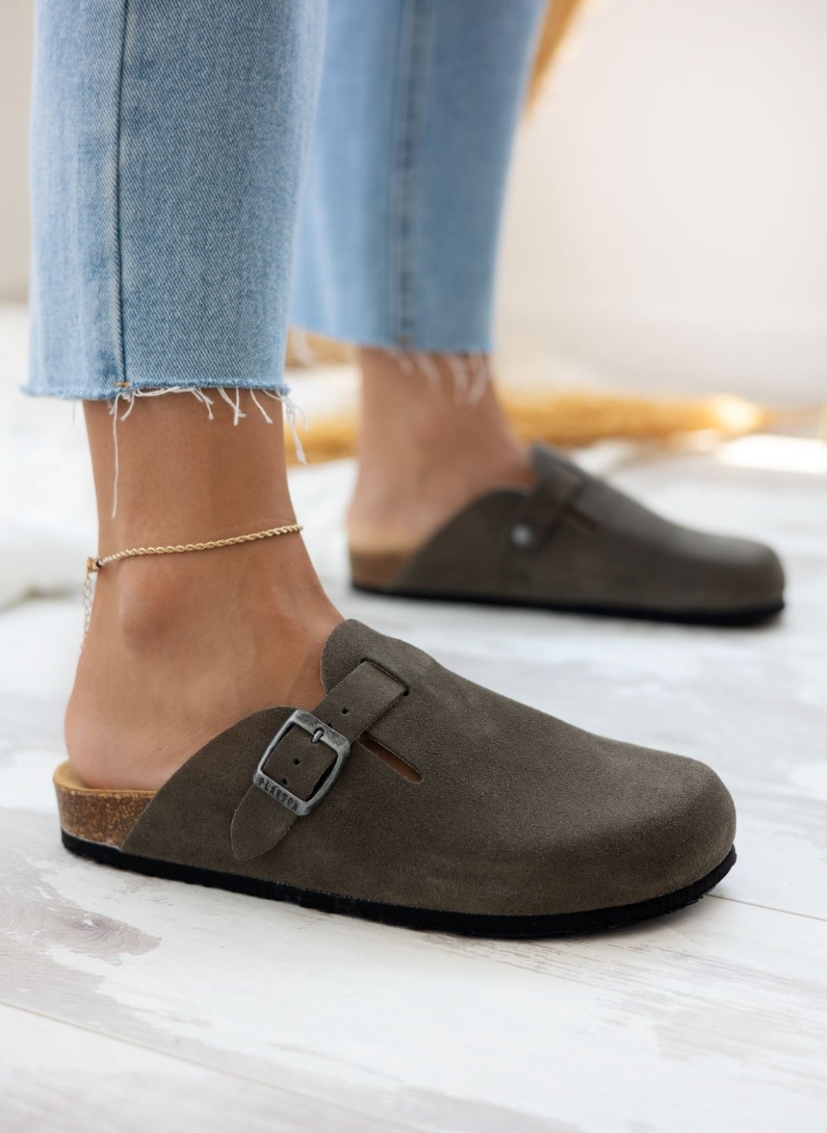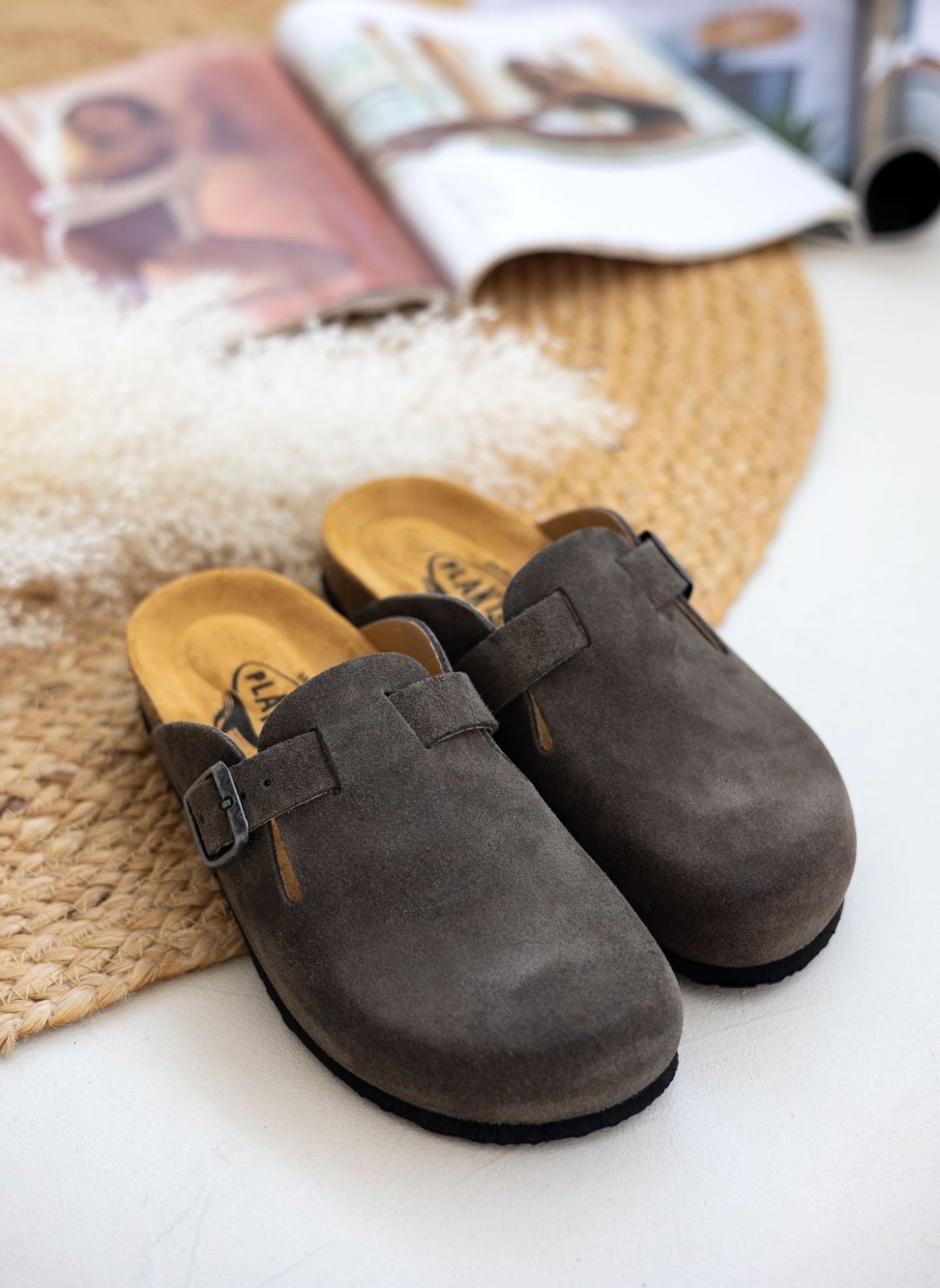 Clogs ανατομικά από δέρμα καστόρι Plakton 181539 - Χακί