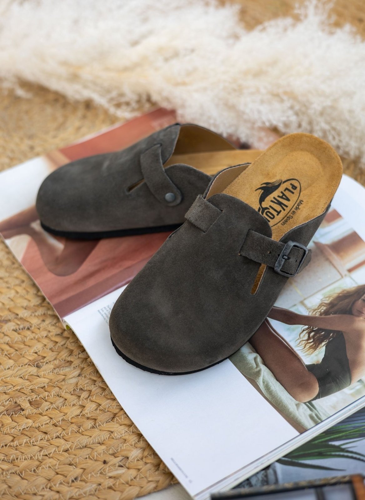 Clogs καστόρινα Plakton. Έχουν λουράκι με μικρό τοκά για καλύτερη εφαρμογή στο κουτεπιέ. Ανατομικός καστόρινος πάτος με Memory Cushion Technology. Φυσικός φελλός στη σόλα. Made in Spain.
