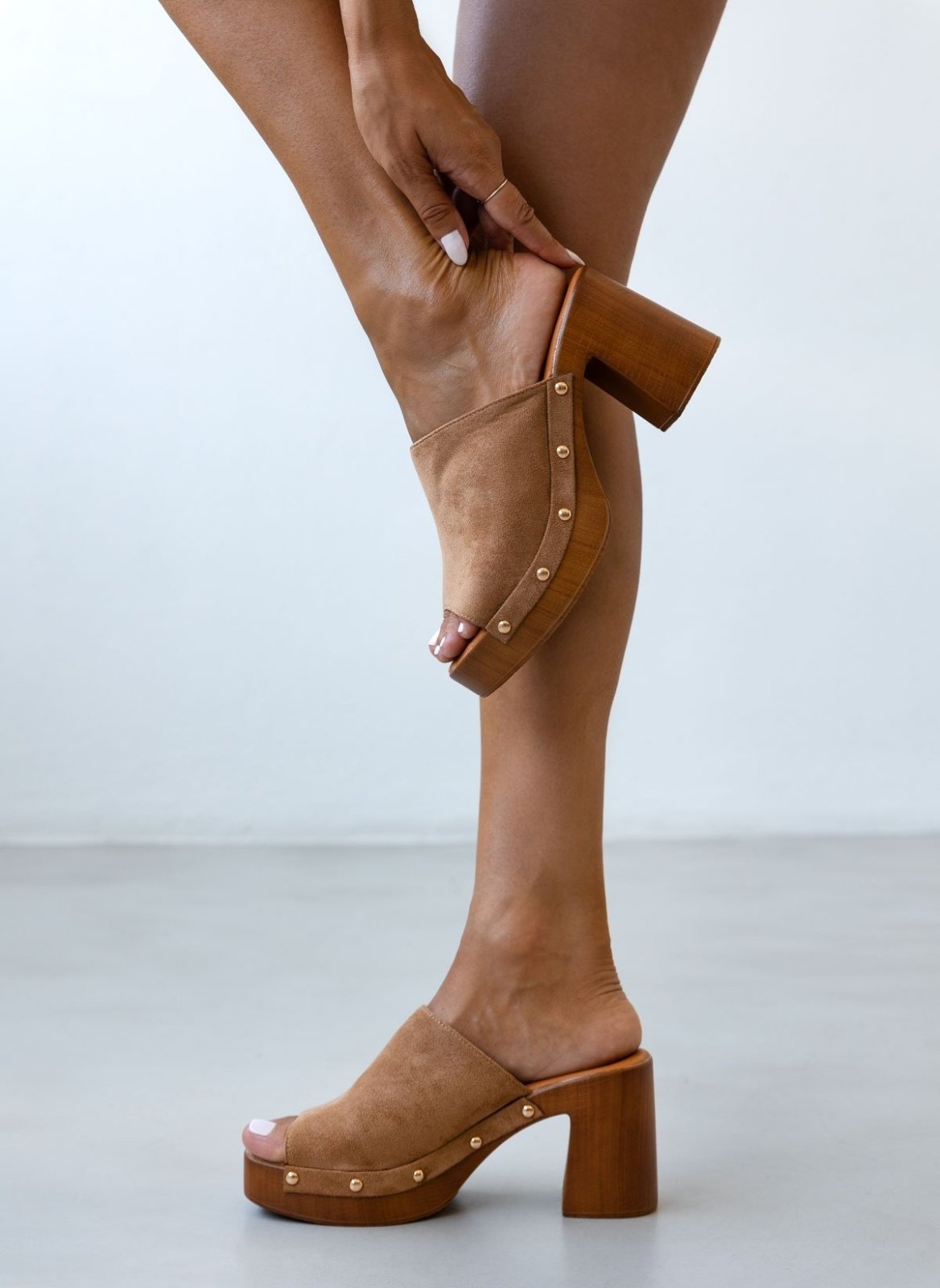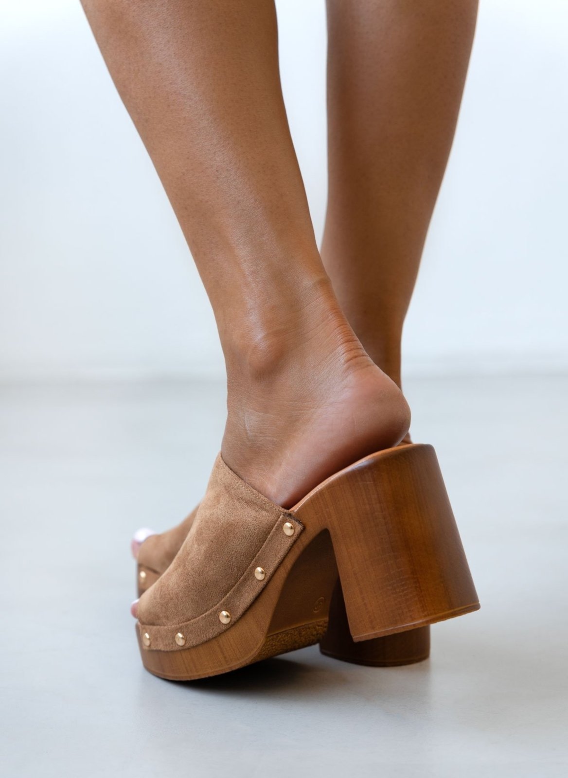 Clogs suede με χρυσά τρουκς Erynn - Τάουπε