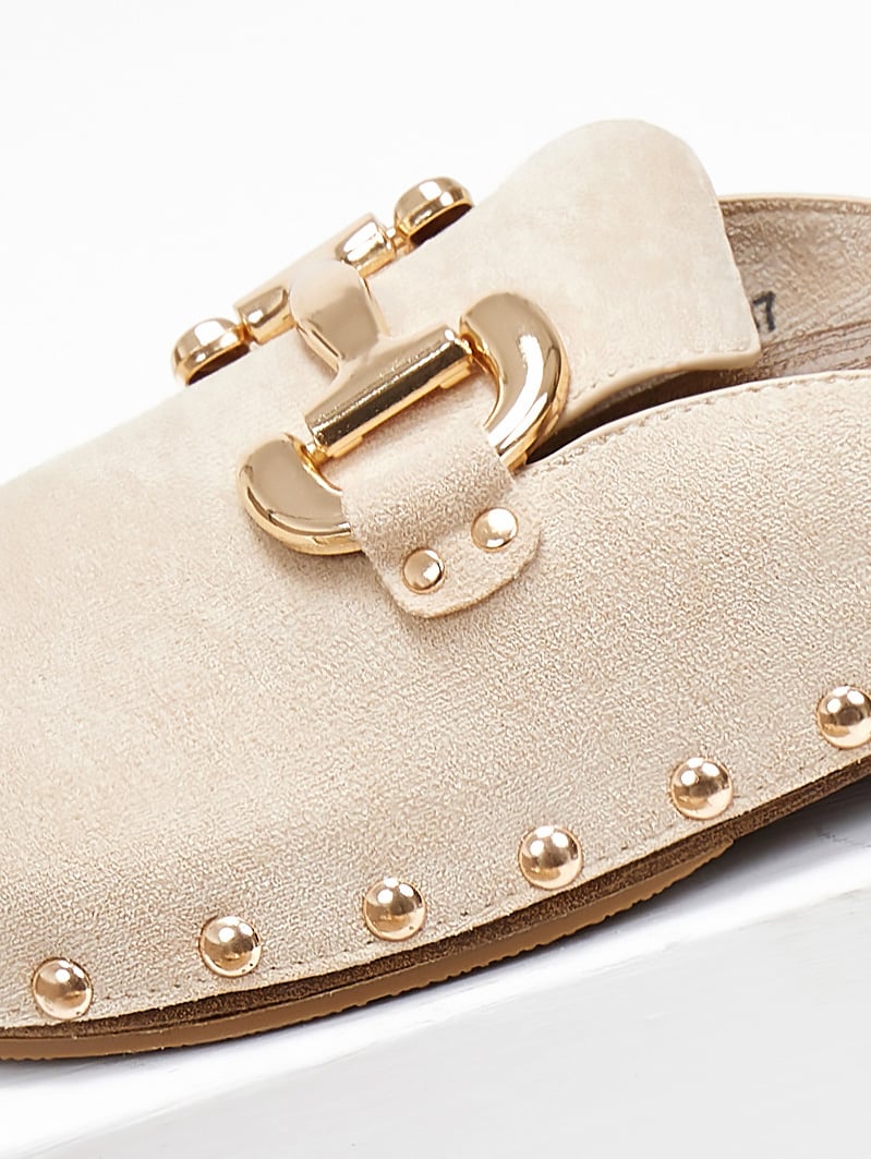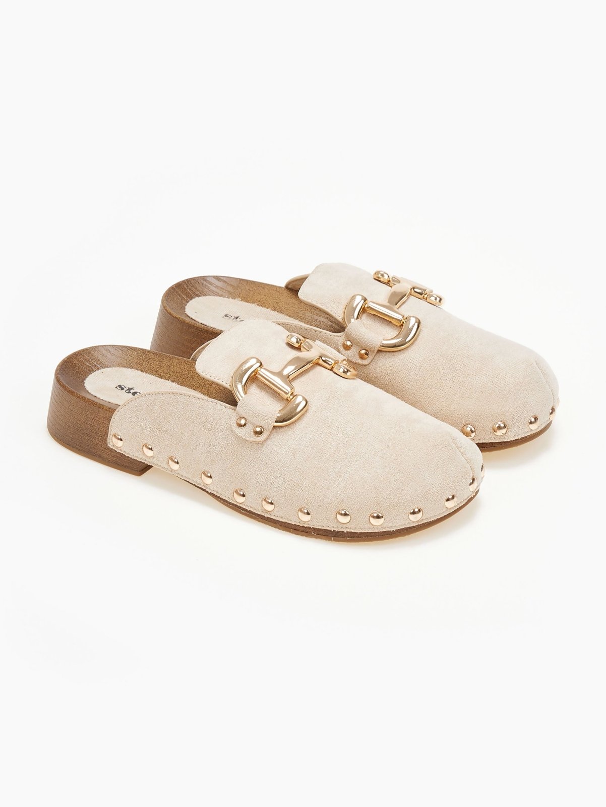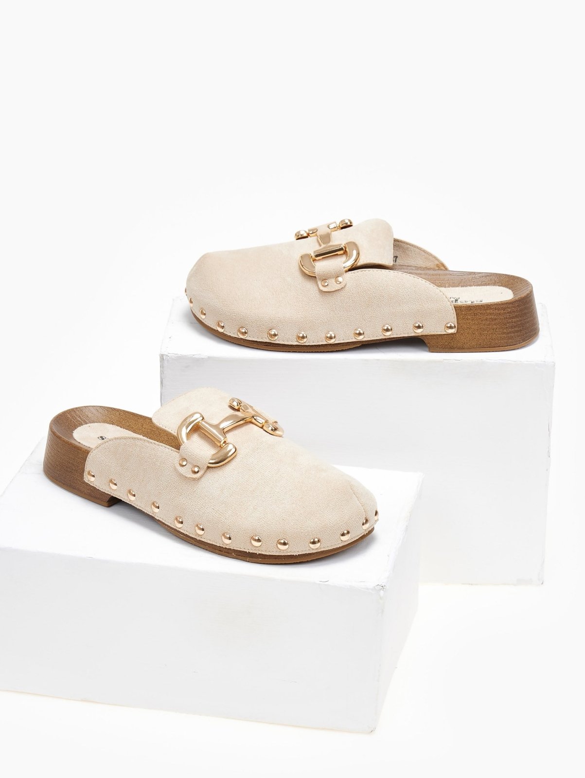 Clogs suede με μεταλλικά τρουκς - Μπεζ