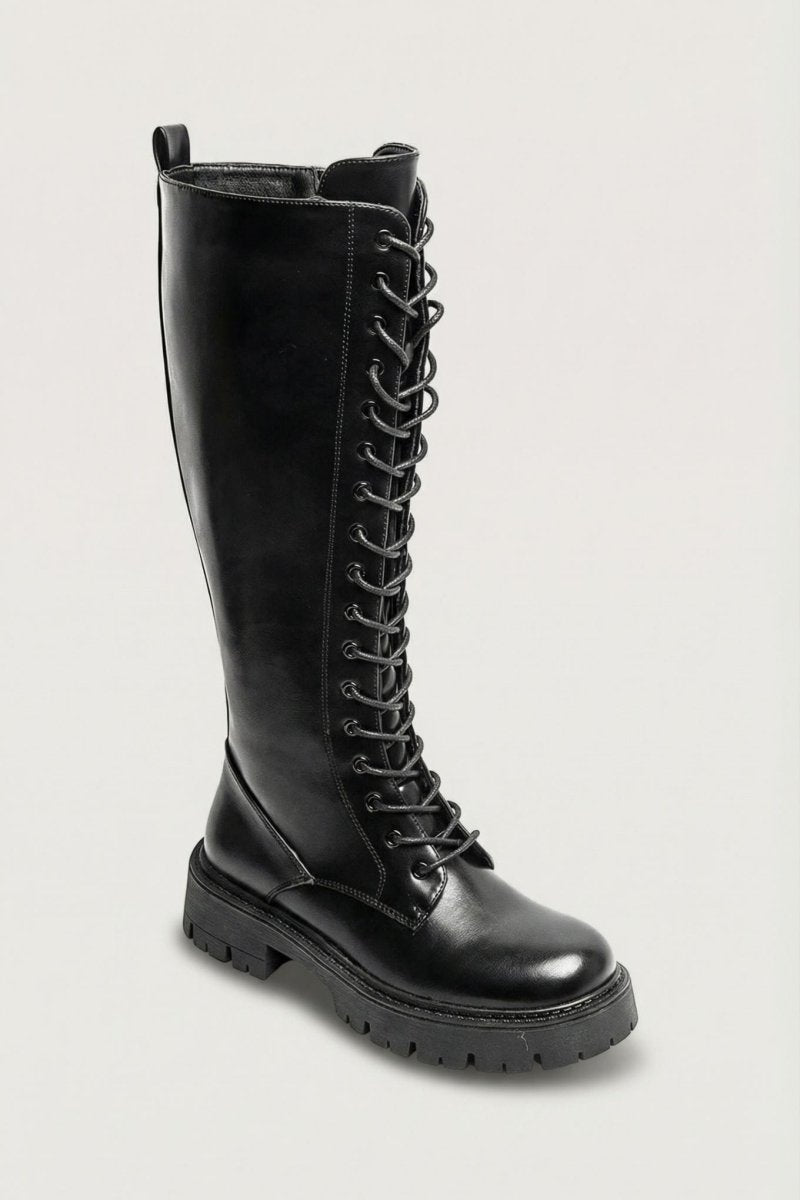 Modern combat boots with secure lace up front and convenient side zip. A sturdy, stylish design offering everyday comfort and confident urban attitude.
