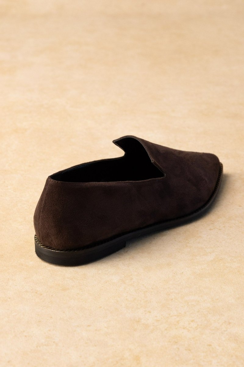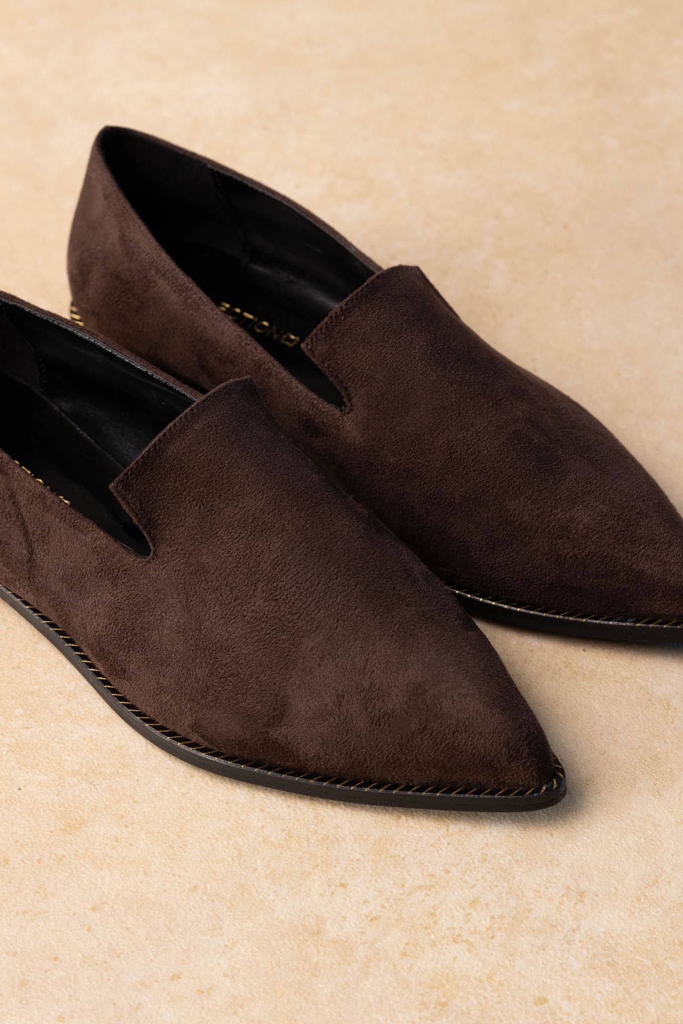 Pointed suede women’s loafers with metallic rim detail and a leather insole. Greek-made cushioned comfort and sleek slip-on fit—refined for every occasion.