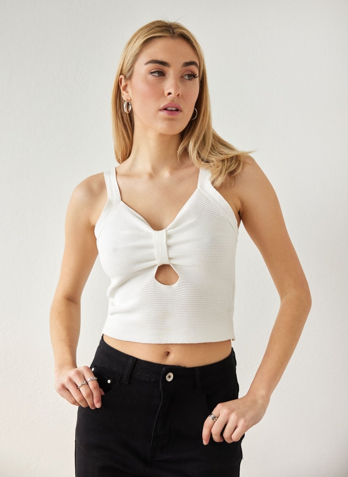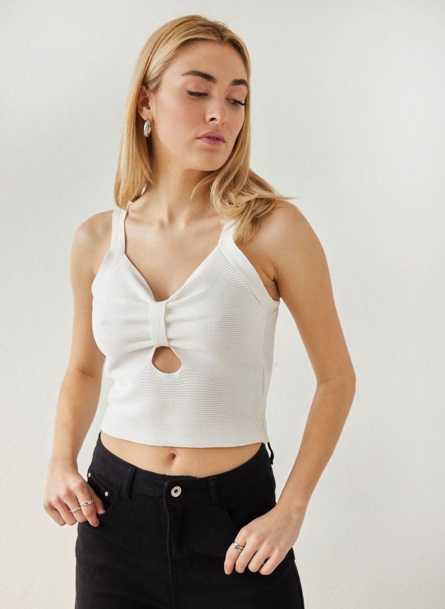 Crop top πλεκτό με άνοιγμα - Λευκό