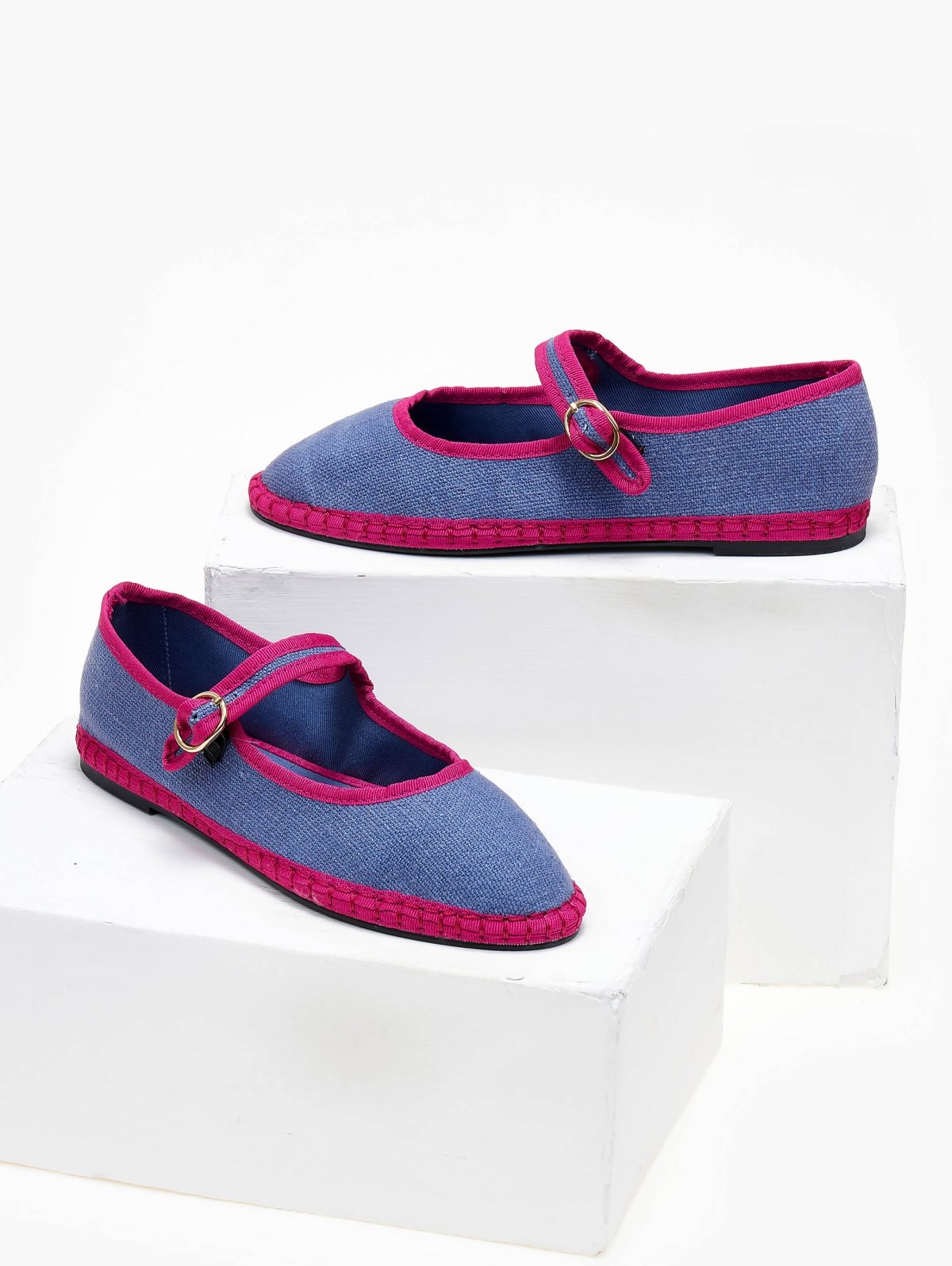 Εσπαντρίγιες λινές Mary Janes - Ίντιγκο