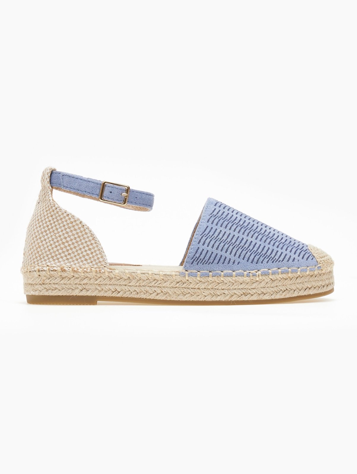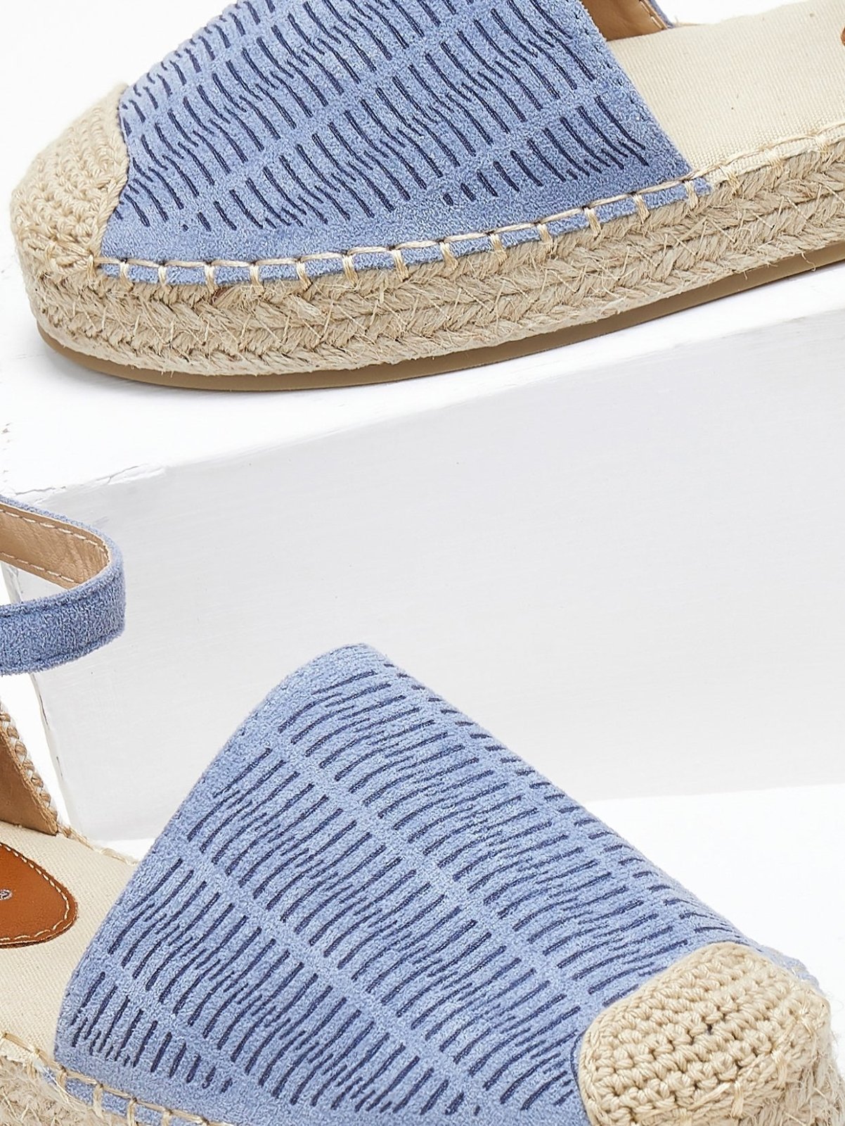 Εσπαντρίγιες suede με ανάγλυφο σχέδιο. Έχουν ανοιχτά πλαϊνά. Κλειστή φτέρνα. Δένουν με μπαρέτα στο ύψος του αστραγάλου.