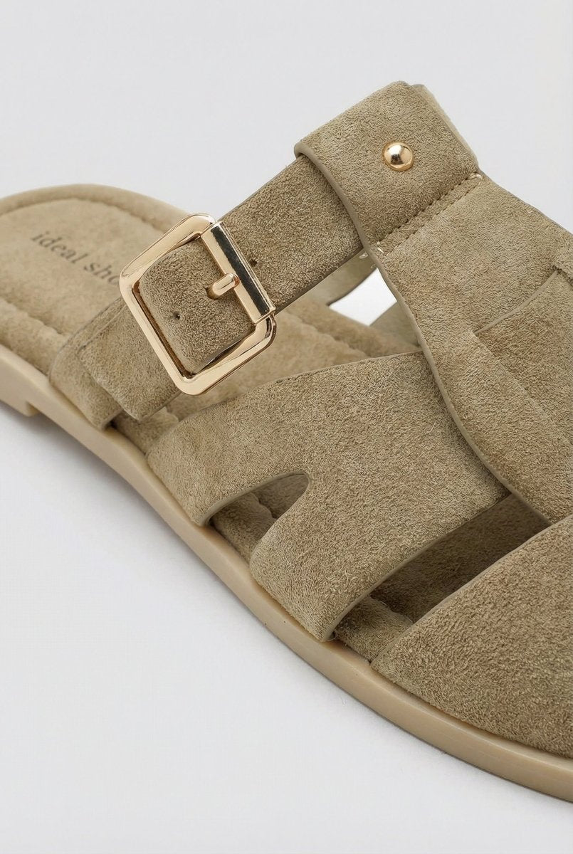 Fisherman Mule Sandals - Olive Suede