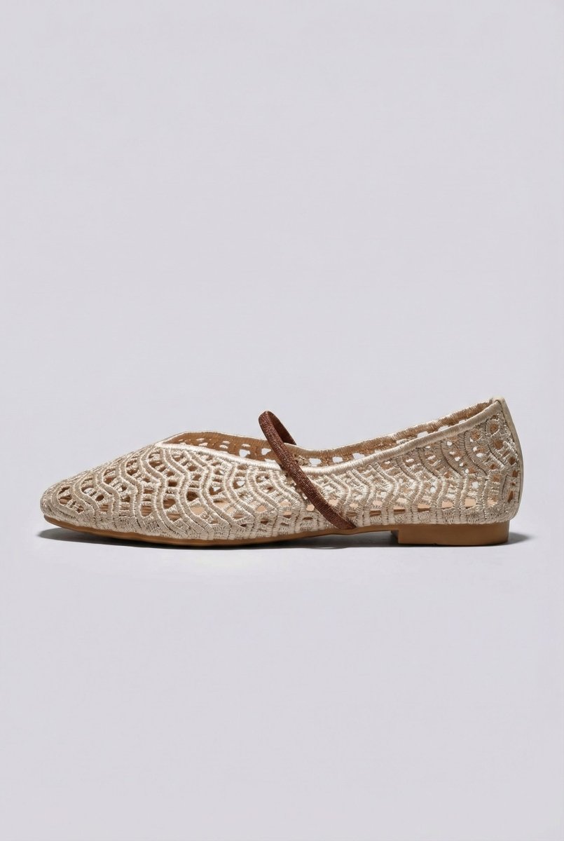 Flat Ballet Flats V Cut - Beige Matte