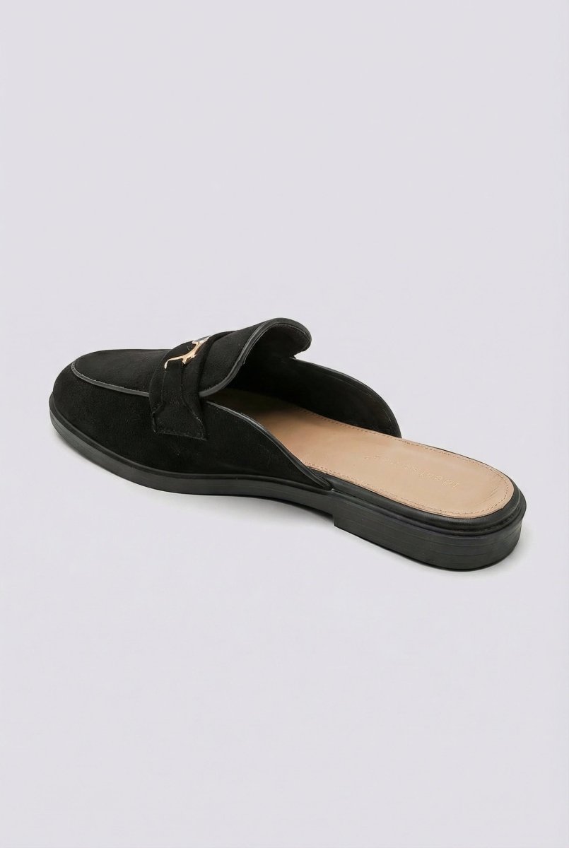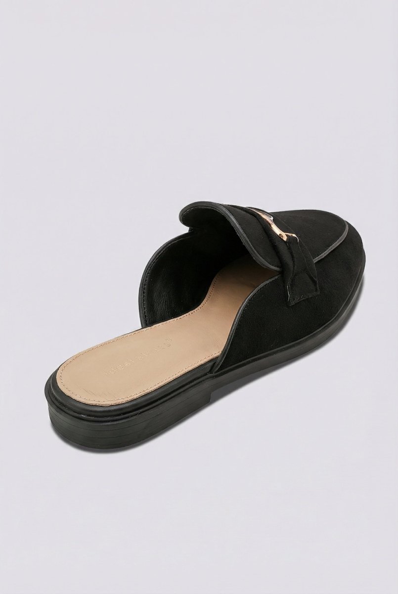 Flat Mules with Metal Detail - Black Suede